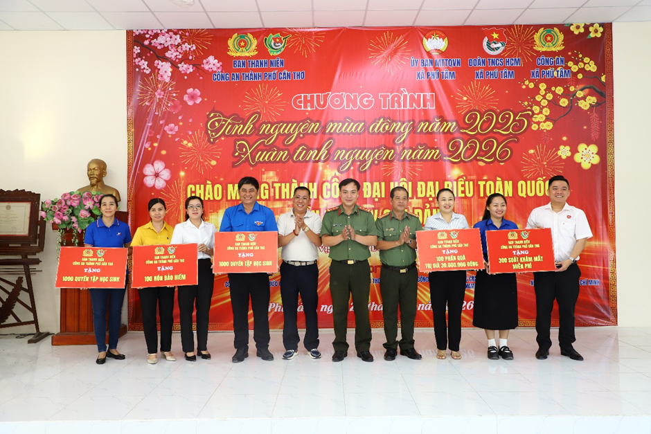 Ngày 27/1, Công an thành phố Cần Thơ tổ chức chương trình “Tình nguyện mùa đông năm 2025 – Xuân tình nguyện năm 2026” tại xã Phú Tâm, thành phố Cần Thơ.