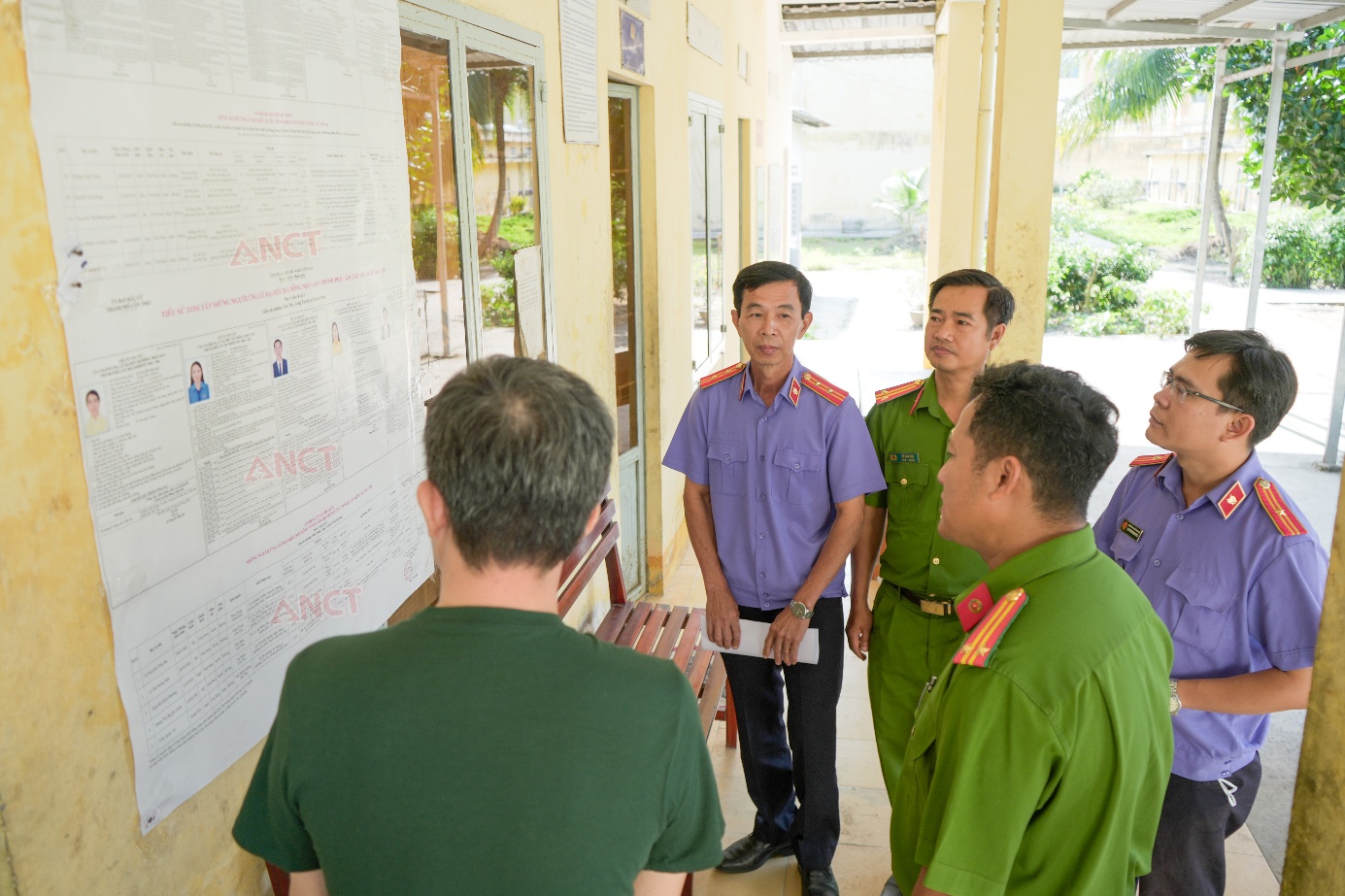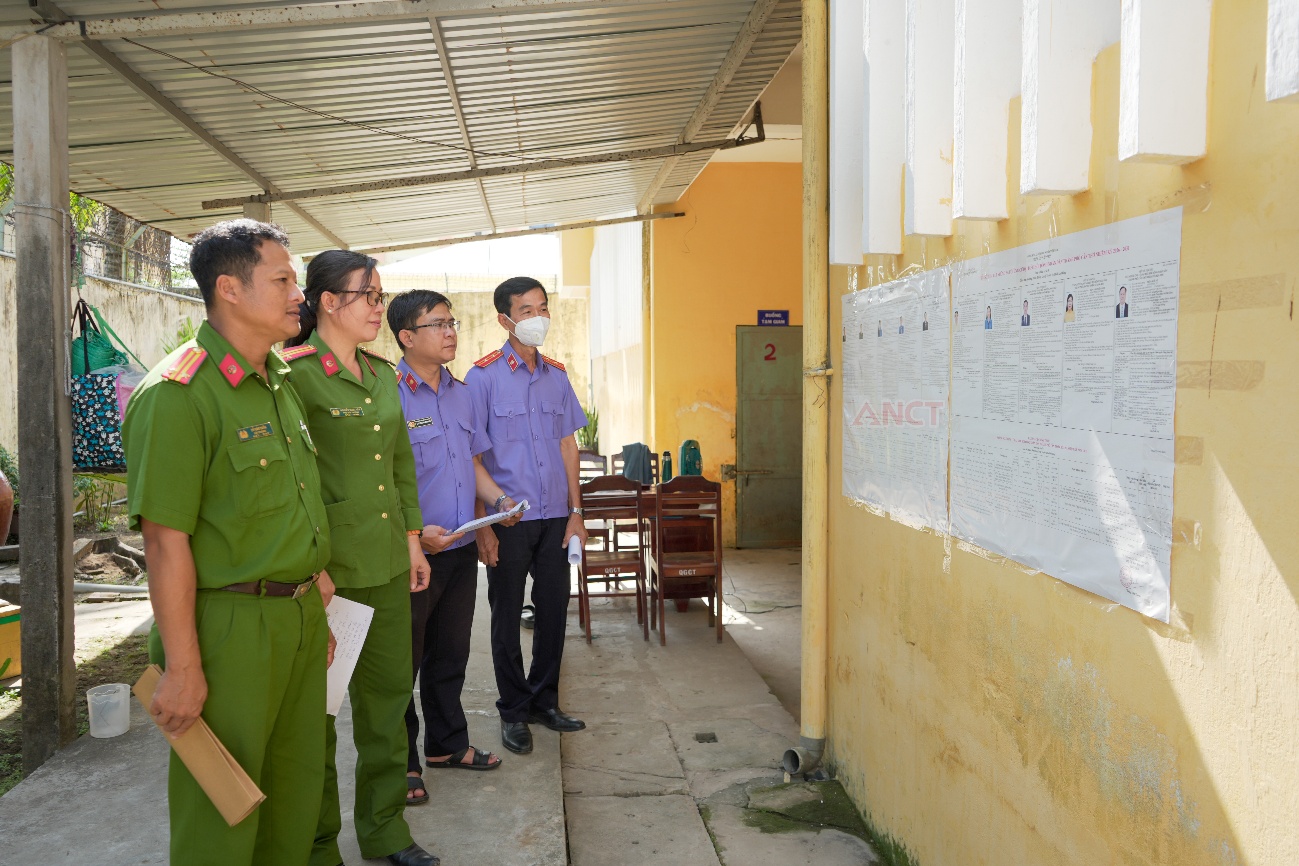 Lực lượng chức năng kiểm tra việc niêm yết thông tin về các ứng cử viên tại khu vực giam giữ