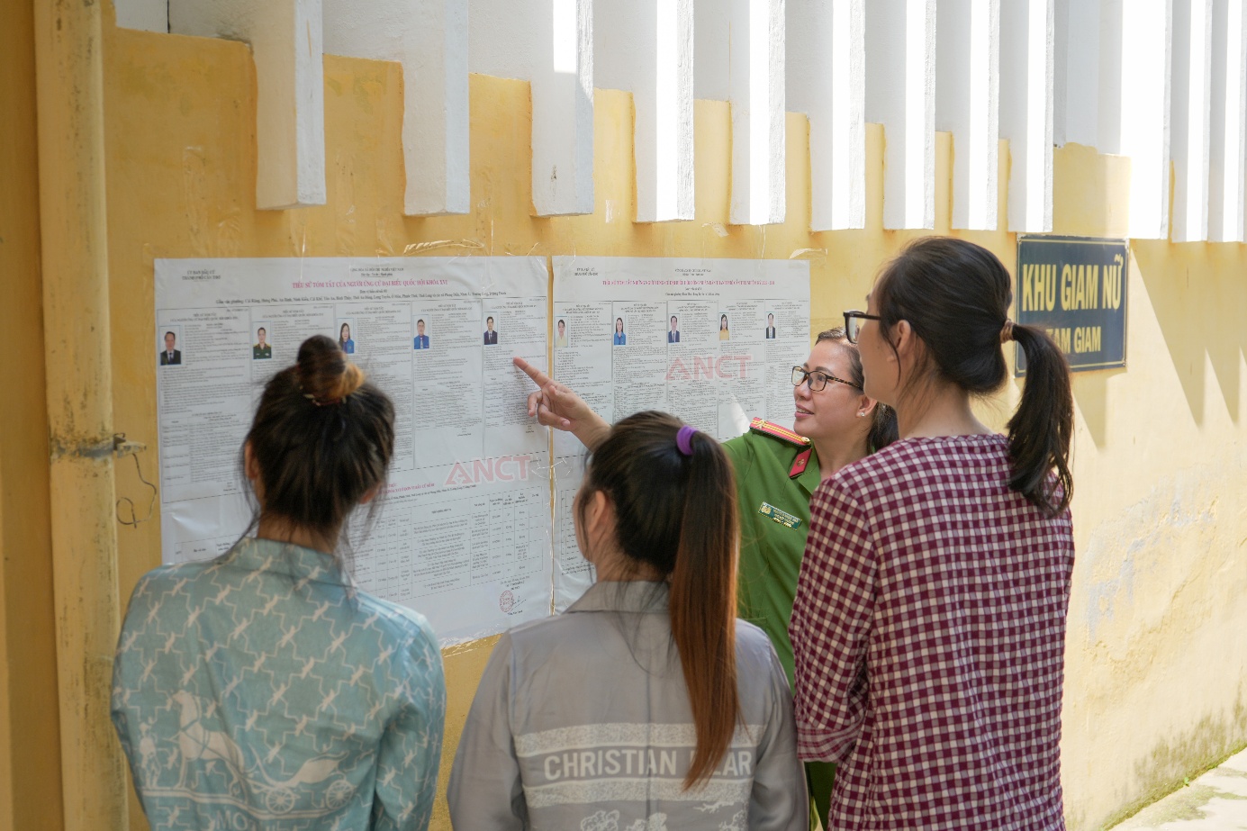 Cán bộ cơ sở giam giữ phổ biến thông tin về cuộc bầu cử tại khu vực niêm yết danh sách các ứng cử viên