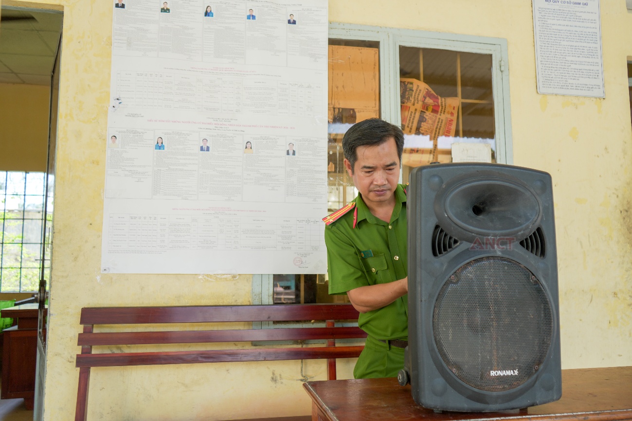 Chuẩn bị hệ thống loa phục vụ công tác tuyên truyền về cuộc bầu cử trong cơ sở giam giữ