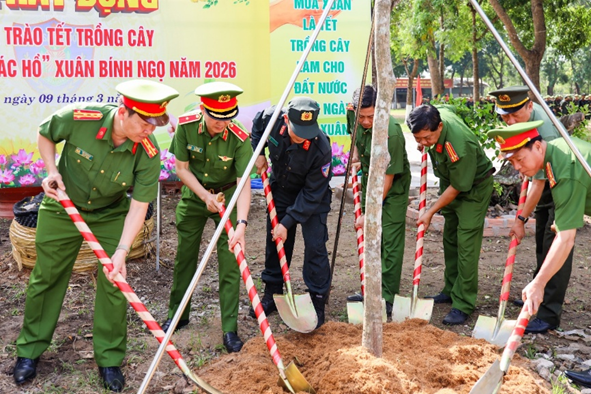 Sau lễ khai giảng, các đại biểu và cán bộ, chiến sĩ Trung đoàn Cảnh sát cơ động Tây Nam Bộ đã tham gia hưởng ứng Tết trồng cây “Đời đời nhớ ơn Bác Hồ” trong khuôn viên đơn vị. Hoạt động diễn ra trong không khí phấn khởi, góp phần xây dựng cảnh quan đơn vị xanh - sạch - đẹp, đồng thời lan tỏa ý thức bảo vệ môi trường và tiếp nối truyền thống tốt đẹp của lực lượng Công an nhân dân trong việc tích cực tham gia các phong trào vì cộng đồng.