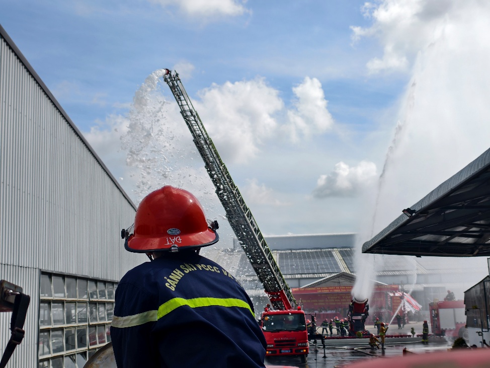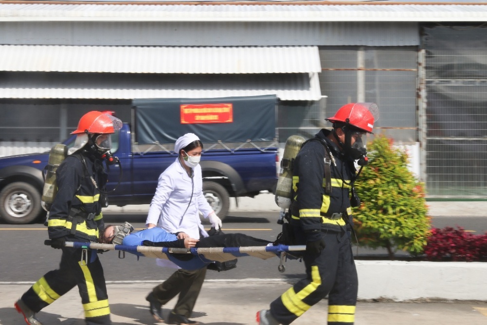 Buổi thực tập được tiến hành qua 03 giai đoạn: Lực lượng phòng cháy, chữa cháy (PCCC) của Công ty TNHH TKG Taekwang triển khai công tác chữa cháy và CNCH ban đầu; Giám đốc Công an thành phố huy động lực lượng, phương tiện hỗ trợ chữa cháy và CNCH; Chủ tịch Ủy ban nhân dân thành phố huy động lực lượng, phương tiện theo thẩm quyền để tăng cường, hỗ trợ công tác chữa cháy và CNCH.