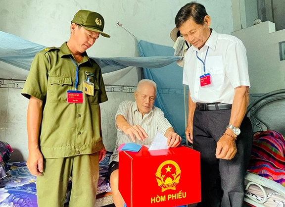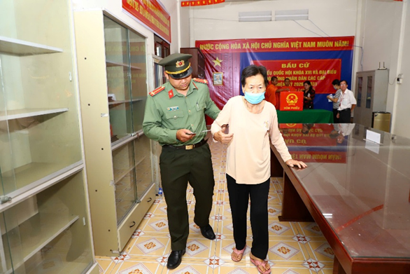 Tại một số khu vực bỏ phiếu cũng đã ghi nhận những hình ảnh cán bộ, chiến sĩ Công an tận tình dìu đỡ người cao tuổi, hỗ trợ cử tri đi lại khó khăn đến thực hiện quyền công dân. Đặc biệt, tại khu vực bỏ phiếu số 16, phường Cái Khế, thành phố Cần Thơ, cử tri Vũ Thị Còm đã gần 100 tuổi chậm rãi bước vào khu vực bỏ phiếu giữa dòng người tấp nập đã để lại nhiều xúc động trong lòng người dân.