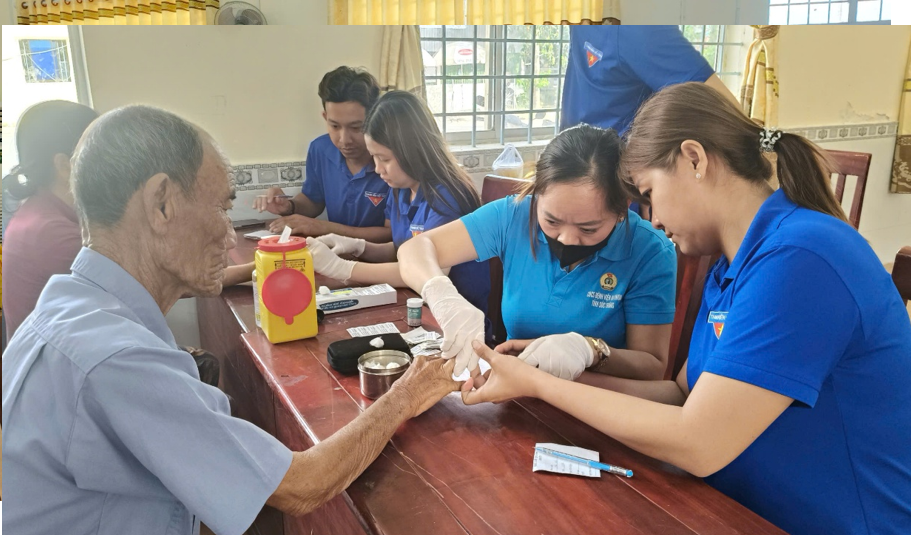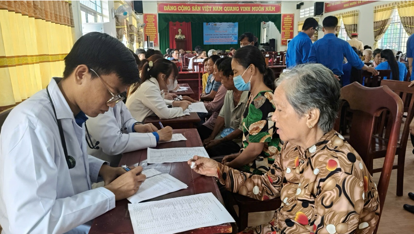 Đây là hoạt động ý nghĩa hướng đến kỷ niệm 51 năm Ngày Giải phóng miền Nam, thống nhất đất nước (30/4/1975 – 30/4/2026) và Ngày Quốc tế Lao động 01/5, đồng thời phát huy vai trò xung kích, tình nguyện của đoàn viên thanh niên trong công tác chăm sóc sức khỏe cộng đồng, góp phần thực hiện hiệu quả công tác an sinh xã hội tại địa phương Tại chương trình, đội ngũ y, bác sĩ đã tiến hành khám tổng quát, đo huyết áp, kiểm tra đường huyết, tư vấn sức khỏe và cấp phát thuốc miễn phí cho khoảng 100 người dân thuộc diện gia đình chính sách, người cao tuổi, người khuyết tật, hộ nghèo và những trường hợp gặp khó khăn trong việc tiếp cận dịch vụ y tế. Bên cạnh đó, nhiều phần quà thiết thực gồm gạo và nhu yếu phẩm cũng được trao tận tay các hộ dân, góp phần chia sẻ khó khăn, động viên bà con vươn lên ổn định cuộc sống.