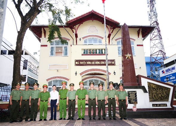 Lãnh đạo Công an thành phố chụp ảnh lưu niệm tại Nhà truyền thống lực lượng Công an Cần Thơ