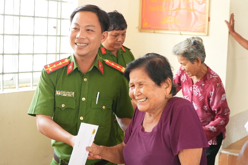 Nụ cười rạng rỡ của người dân khi đón nhận phần quà Tết nghĩa tình từ lực lượng Công an thành phố Cần Thơ