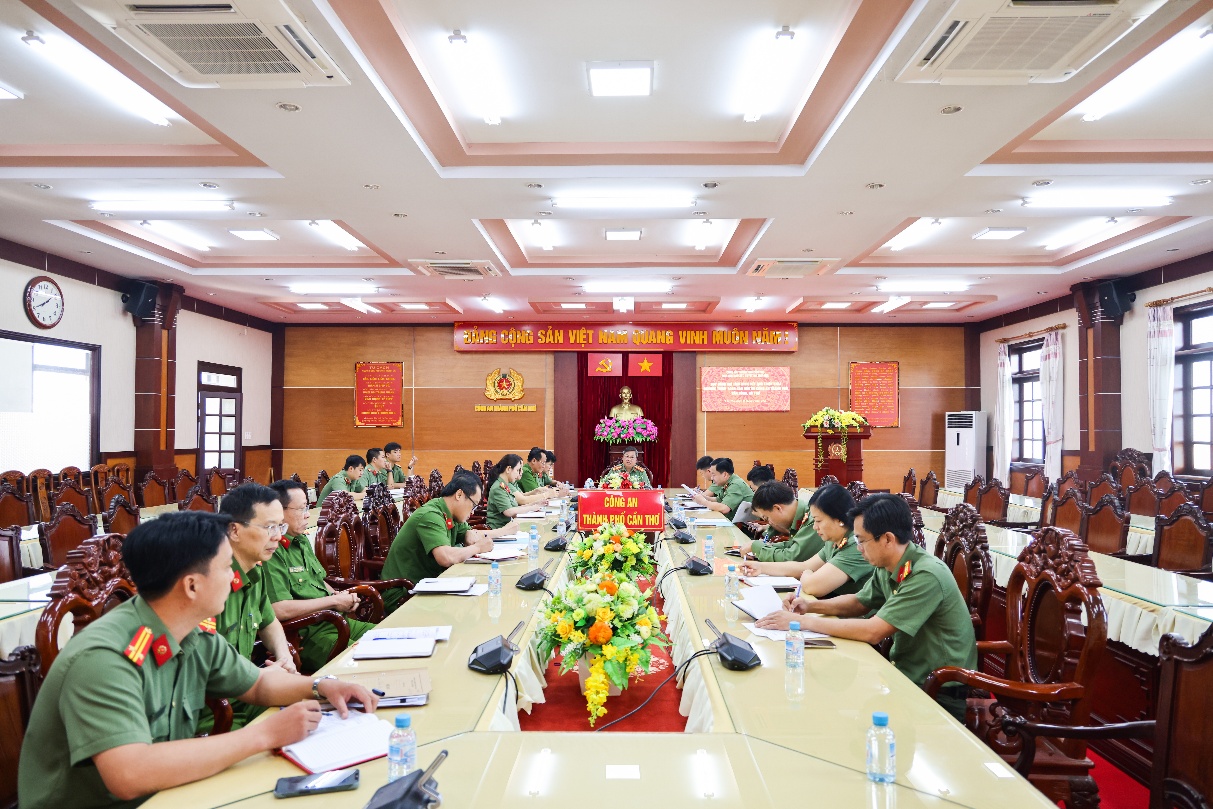 Đại tá Nguyễn Thanh Tràng, Thành ủy viên, Phó Bí thư Đảng ủy, Phó Giám đốc Công an thành phố Cần Thơ phát biểu kết luận cuộc họp