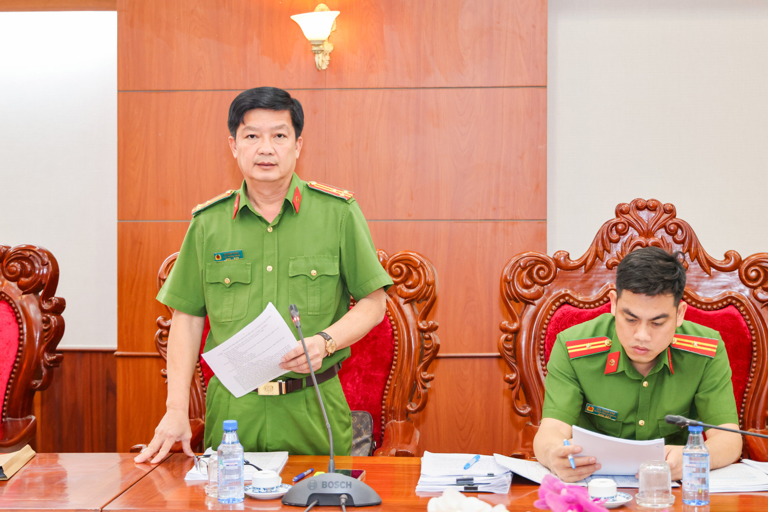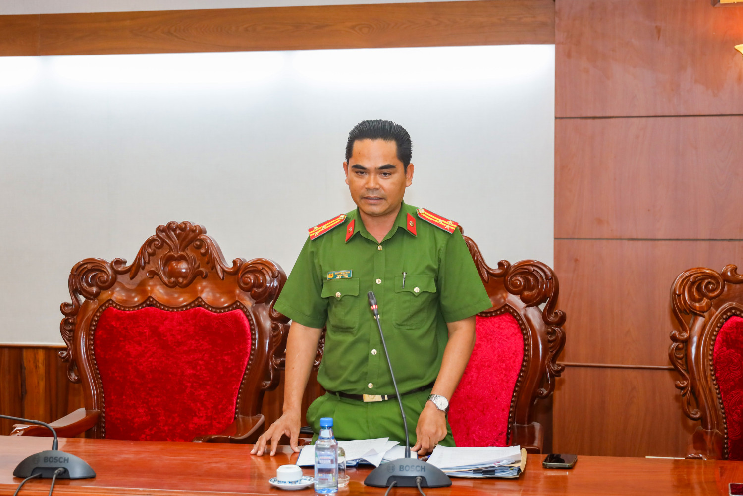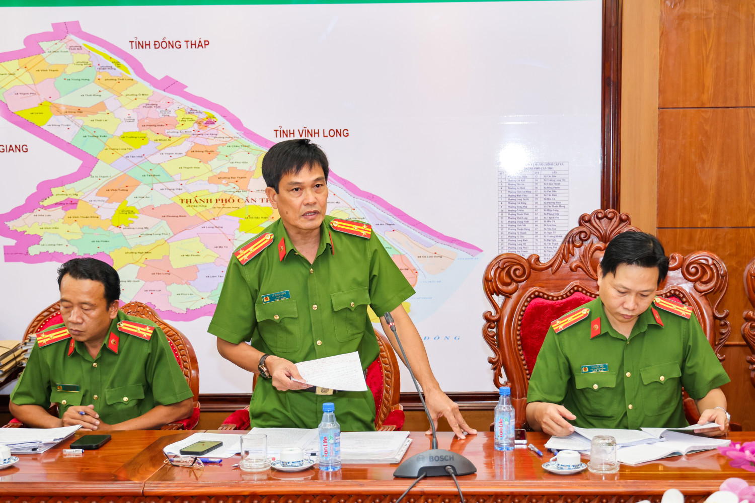 Thượng tá Nguyễn Tấn Vinh, Trưởng Phòng Cảnh sát thi hành hình sự và hỗ trợ tư pháp, Công an thành phố Cần Thơ phát biểu tại cuộc họp