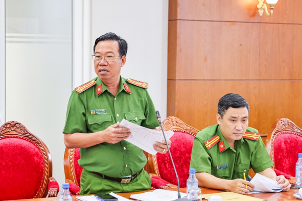 Đại tá Nguyễn Thanh Tràng, Thành ủy viên, Phó Bí thư Đảng ủy, Phó Giám đốc Công an thành phố Cần Thơ, Phó Chủ tịch Hội đồng phát biểu kết luận cuộc họp