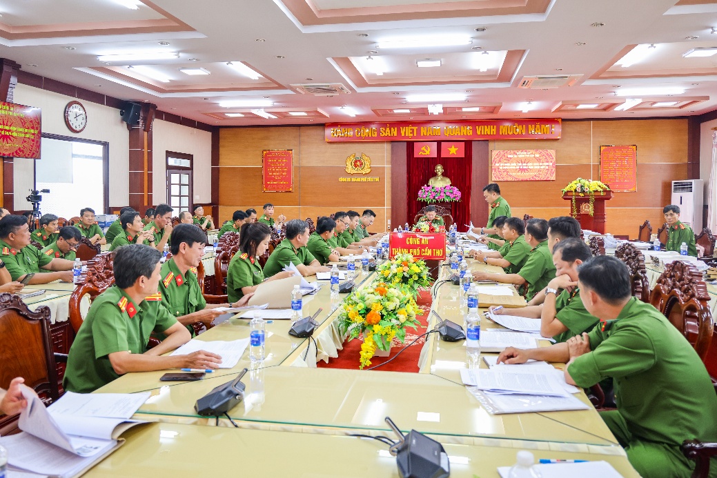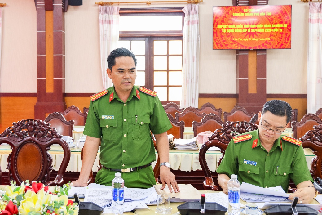 Đại tá Trần Hoàng Độ, Phó Giám đốc Công an thành phố, Thủ trưởng Cơ quan thi hành án hình sự Công an thành phố Cần Thơ phát biểu tại cuộc họp