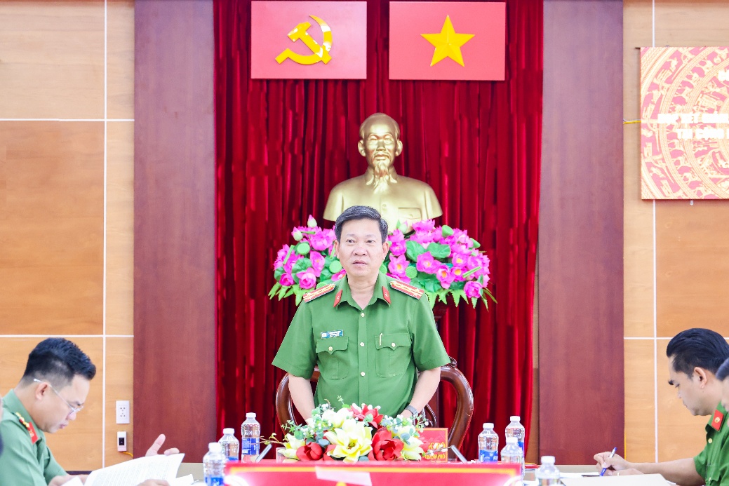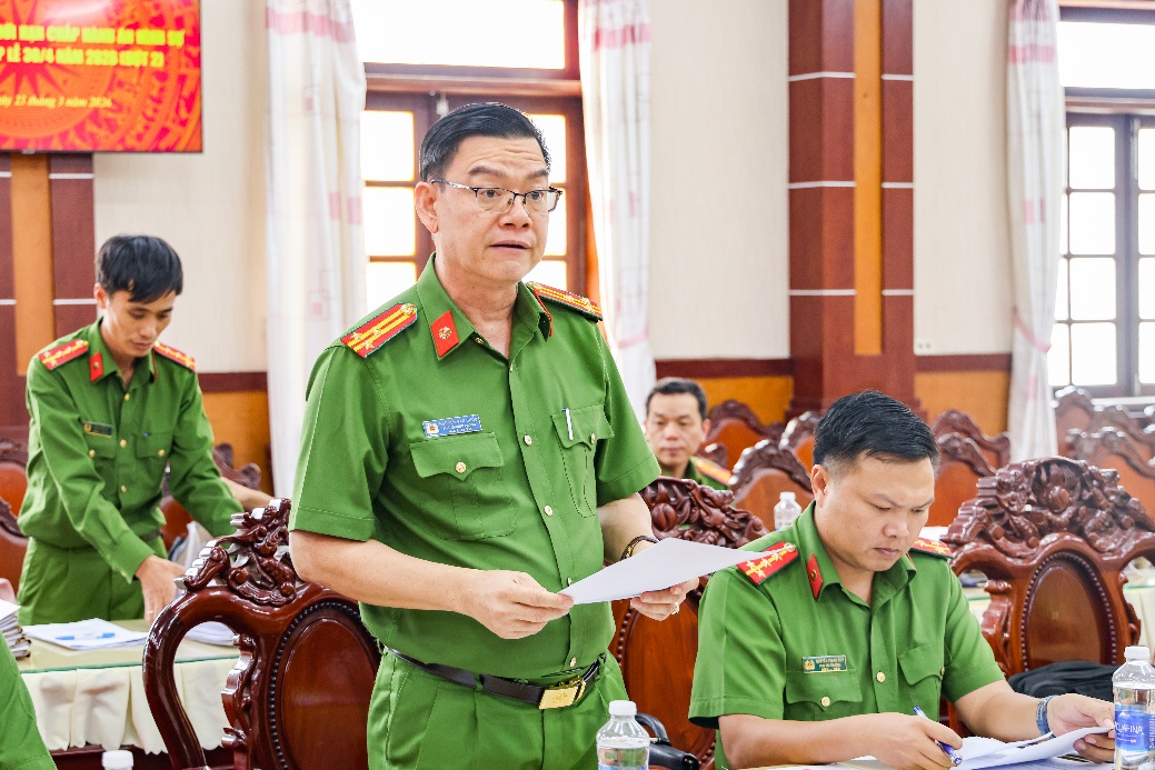 Thượng tá Nguyễn Tấn Vinh, Trưởng phòng Cảnh sát Thi hành án hình sự và Hỗ trợ tư pháp phát biểu tại cuộc họp