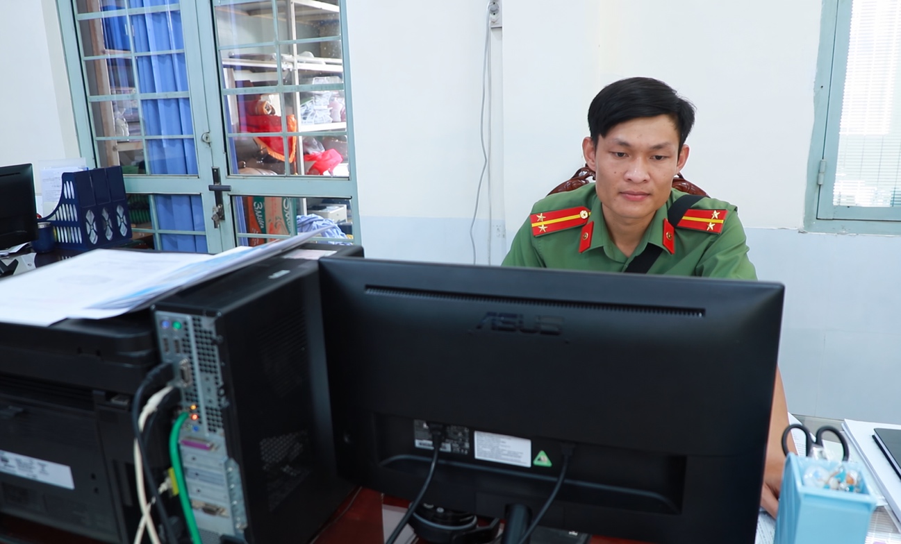 Ảnh: Cán bộ kỹ thuật của Phòng An ninh mạng và phòng, chống tội phạm sử dụng công nghệ cao trực tiếp kiểm tra an toàn thông tin tại các máy trạm