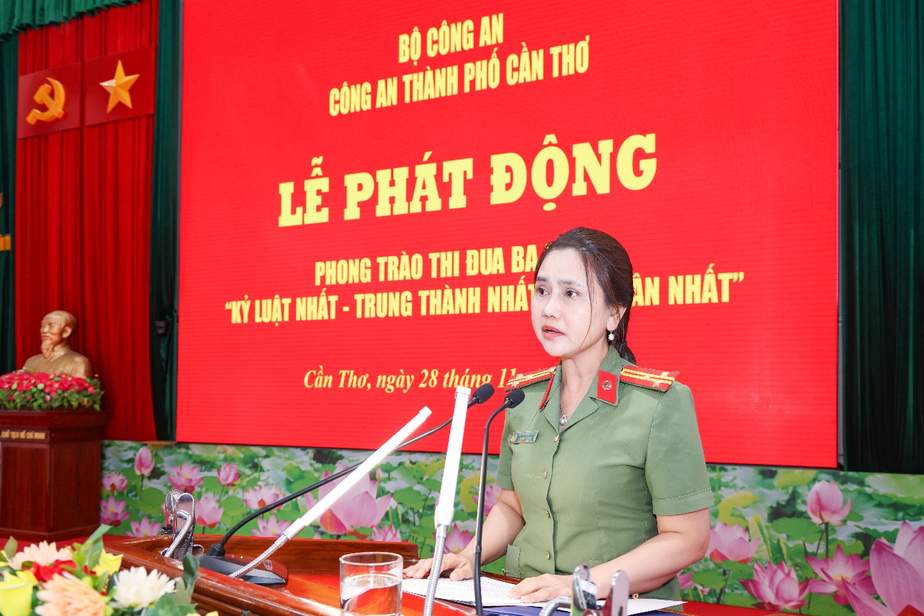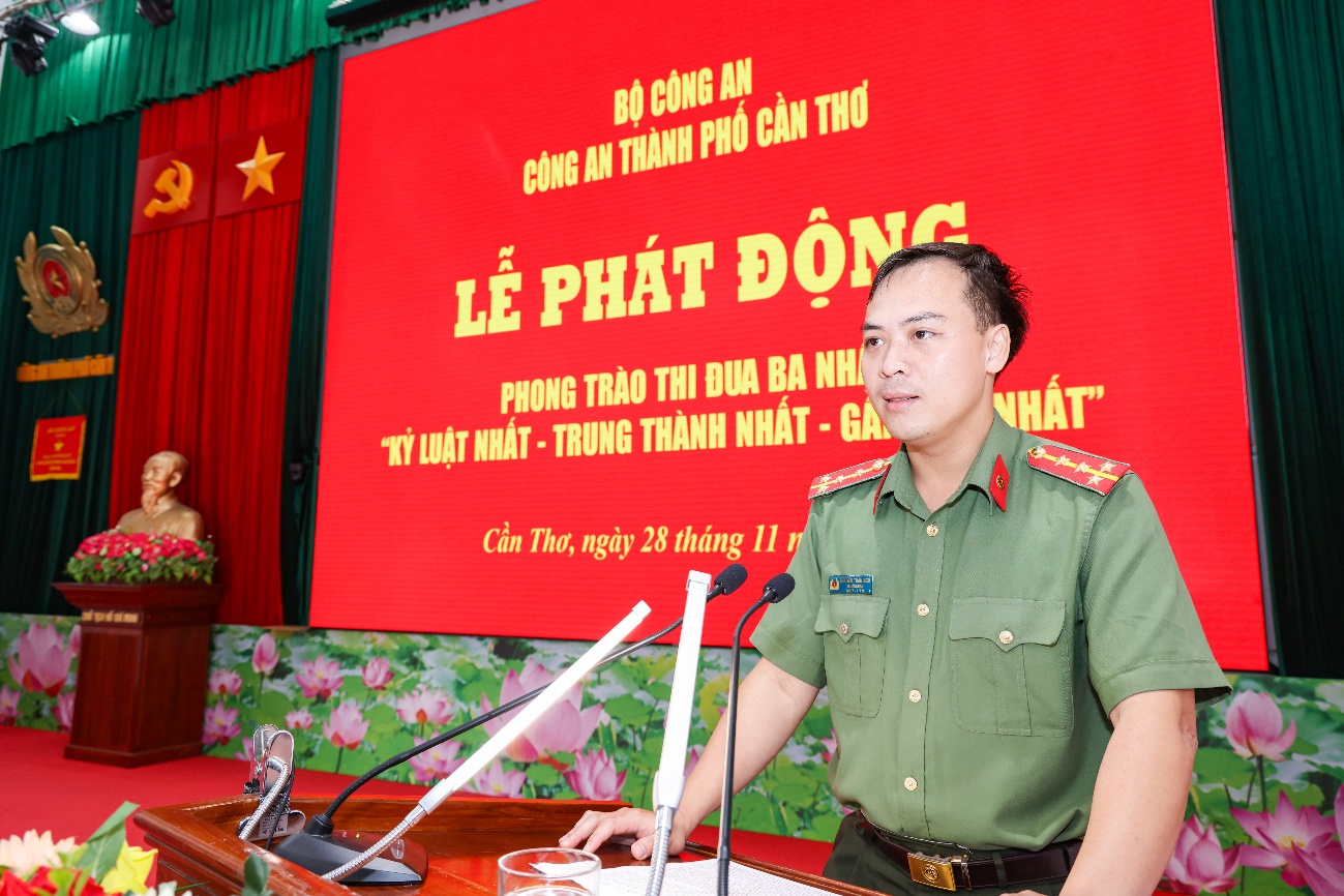 Đồng chí nhấn mạnh phong trào thi đua “Ba nhất” không chỉ là hoạt động thi đua mà là phương thức lãnh đạo của Đảng trong CAND, là thước đo quan trọng đánh giá chất lượng phong trào “Vì an ninh Tổ quốc” và “Toàn dân bảo vệ an ninh Tổ quốc”, góp phần xây dựng lực lượng Công an thành phố thật sự trong sạch, vững mạnh, chính quy, tinh nhuệ, hiện đại. Thay mặt Đảng ủy - Ban Giám đốc Công an thành phố, đồng chí kêu gọi toàn thể cán bộ, chiến sĩ nêu cao tinh thần “Vì nước quên thân, vì dân phục vụ”, phấn đấu hoàn thành xuất sắc các mục tiêu, chỉ tiêu của phong trào thi đua “Ba nhất” thiết thực lập thành tích chào mừng các sự kiện chính trị quan trọng của toàn lực lượng. Hội nghị phát động phong trào thi đua “Ba nhất” của Công an TP Cần Thơ diễn ra trong không khí trách nhiệm - khí thế - đoàn kết - đồng lòng, tạo dấu mốc quan trọng mở đầu cho giai đoạn hành động mới. Từ đây, mỗi cán bộ, chiến sĩ Công an thành phố được kỳ vọng sẽ tiếp tục rèn luyện, phấn đấu, giữ trọn lời thề danh dự của Người chiến sĩ Công an nhân dân “Vì nước quên thân, vì dân phục vụ”.
