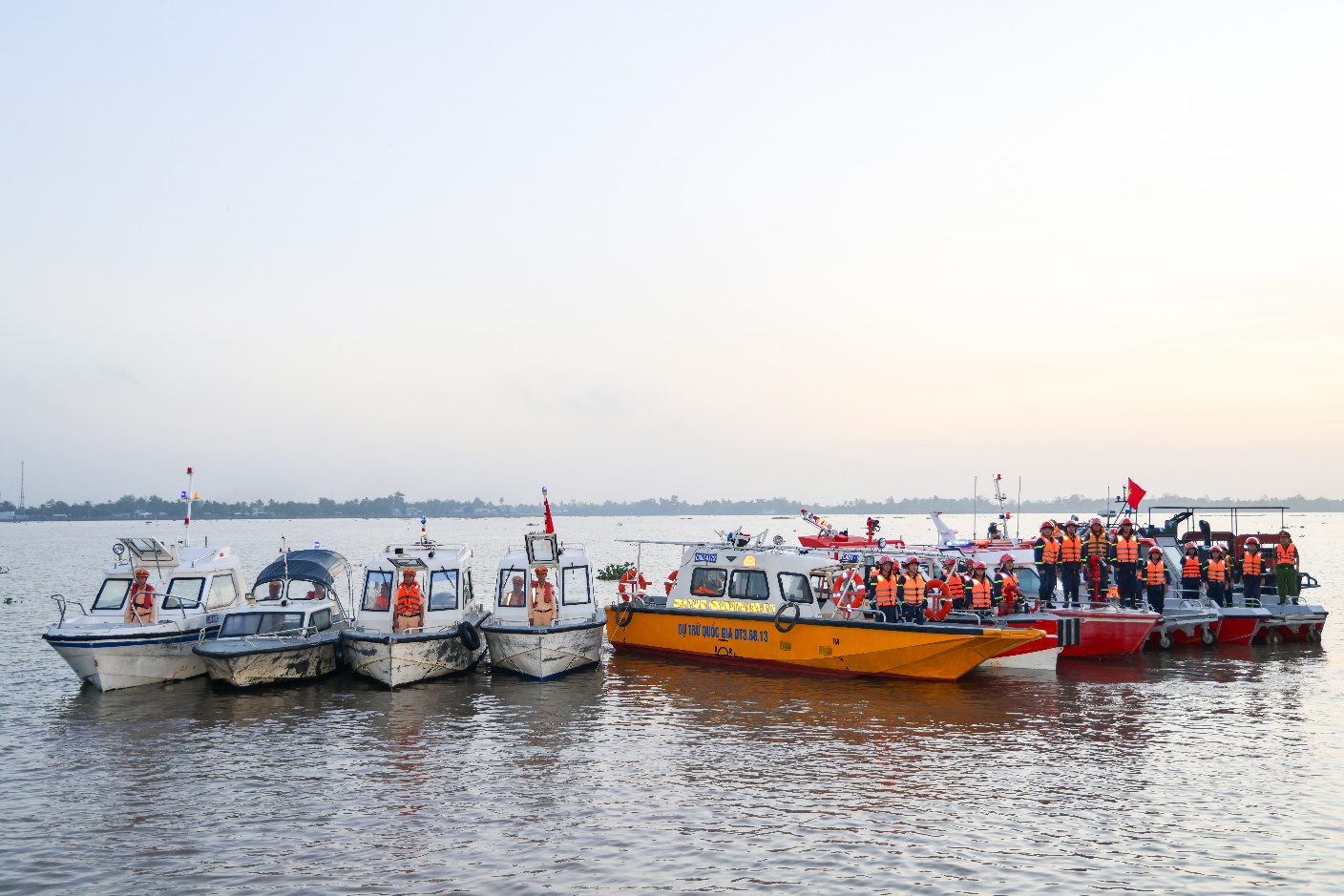Các lực lượng Cảnh sát giao thông, PCCC diễu hành trên tuyến Sông Hậu