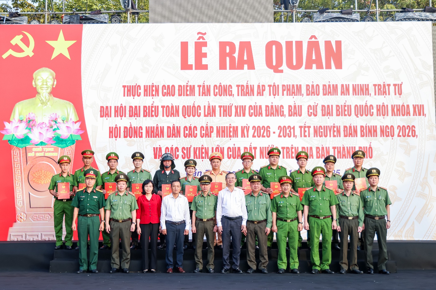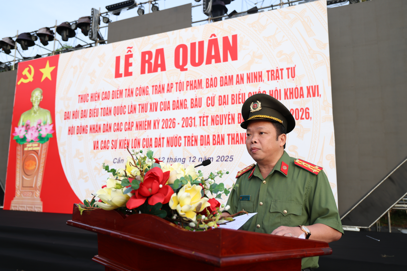 Sáng ngày 12/12/2025, tại Công viên Sông Hậu, Công an thành phố Cần Thơ long trọng tổ chức Lễ ra quân thực hiện cao điểm tấn công, trấn áp tội phạm, bảo đảm an ninh, trật tự phục vụ Đại hội toàn quốc lần thứ XIV của Đảng, bầu cử Quốc hội khóa XVI, HĐND các cấp nhiệm kỳ 2026 - 2031 và Tết Nguyên đán Bính Ngọ 2026.