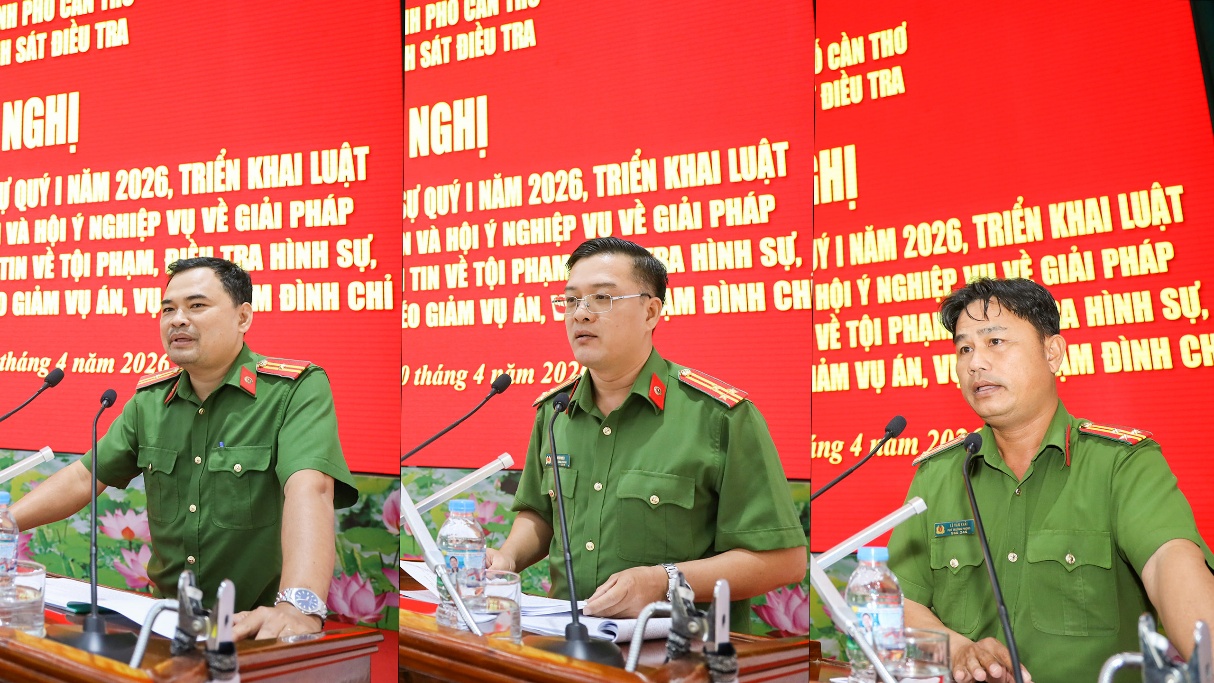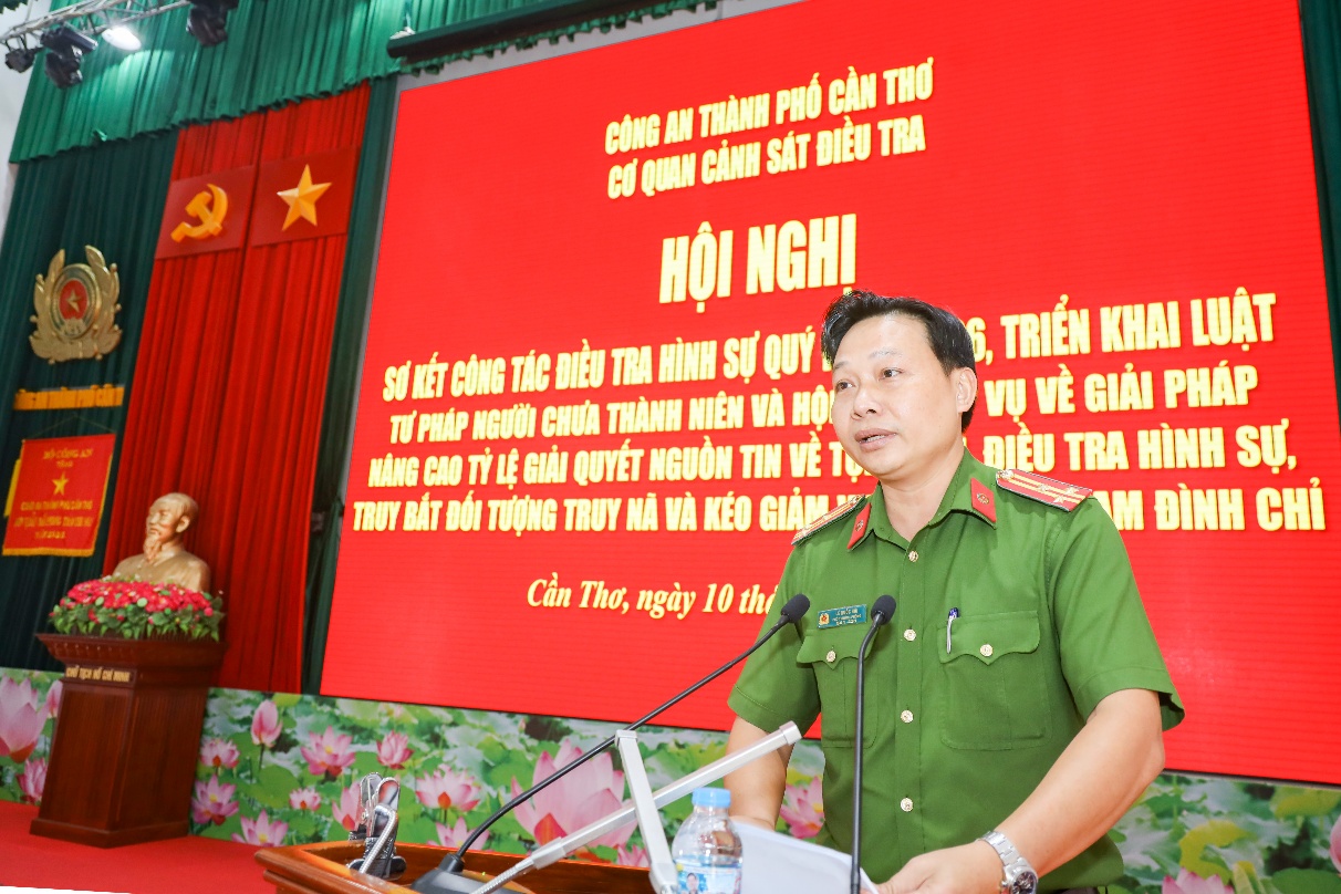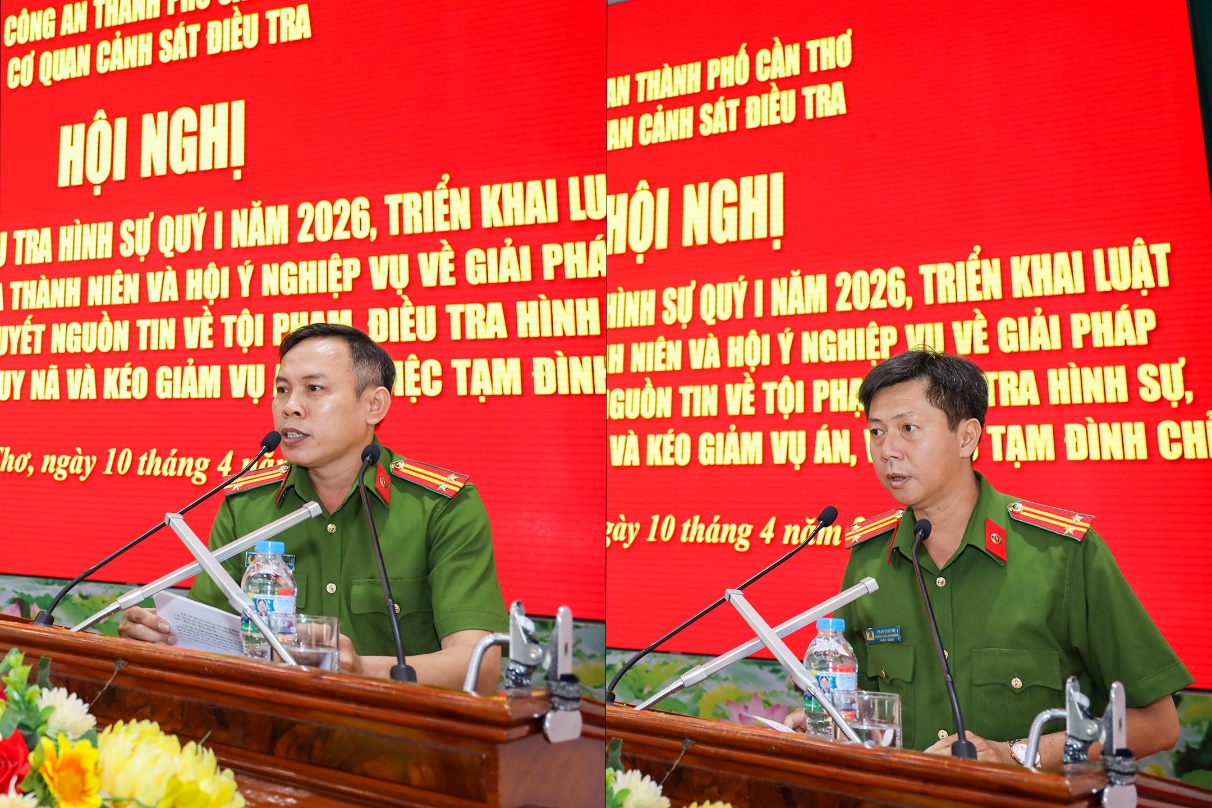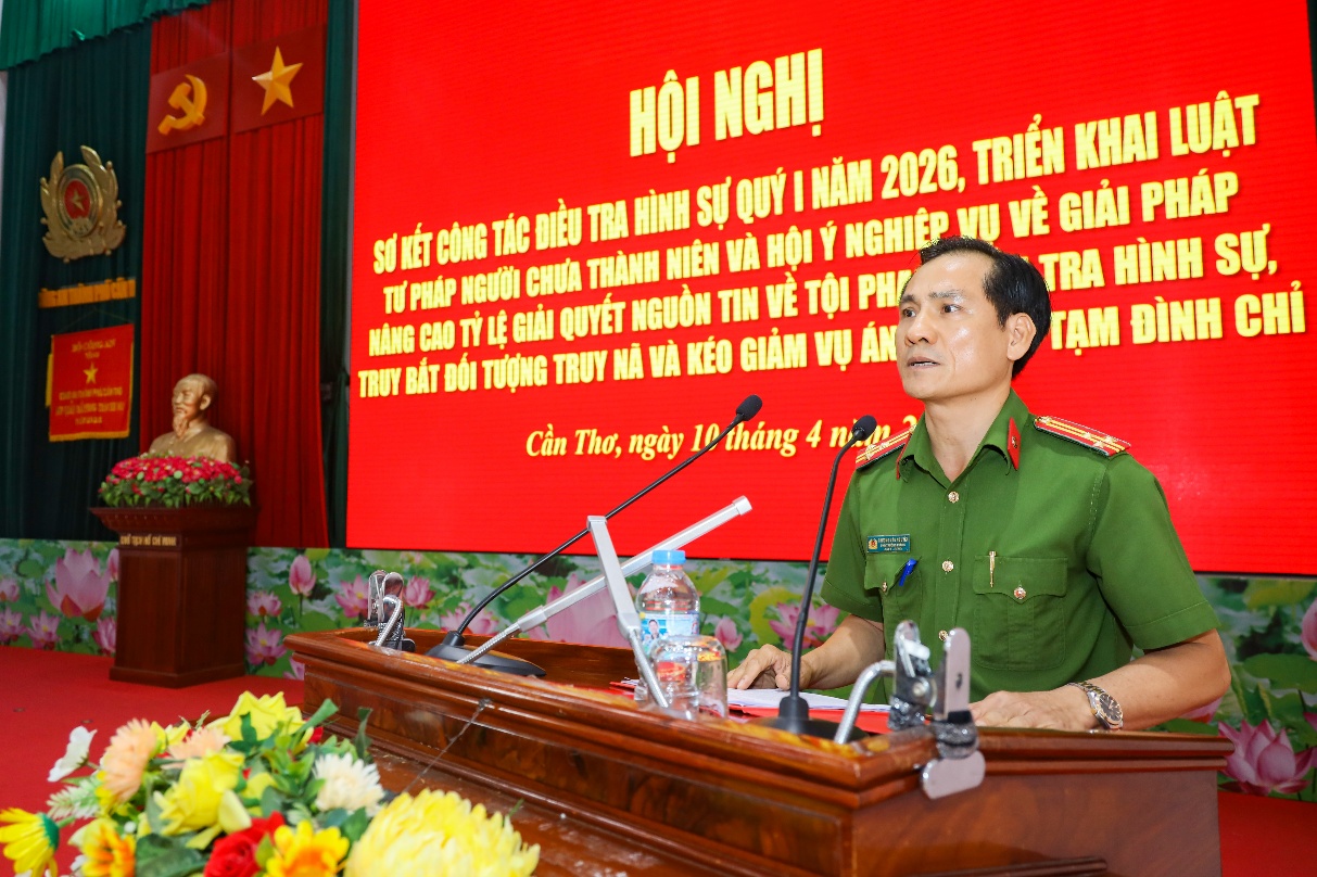 Sáng 10/4, Công an thành phố Cần Thơ tổ chức Hội nghị sơ kết công tác điều tra hình sự Quý I năm 2026; triển khai Luật Tư pháp người chưa thành niên và hội ý nghiệp vụ về các giải pháp nâng cao tỷ lệ giải quyết nguồn tin về tội phạm, điều tra hình sự, truy bắt đối tượng truy nã, kéo giảm các vụ án, vụ việc tạm đình chỉ. Đại tá Bùi Đức An, Ủy viên Ban Thường vụ Đảng ủy, Phó Giám đốc, Thủ trưởng Cơ quan Cảnh sát điều tra Công an thành phố Cần Thơ dự và chỉ đạo Hội nghị; cùng dự có Đại tá Nguyễn Thanh Bình, Ủy viên Ban Thường vụ Đảng ủy, Phó Giám đốc Công an thành phố Cần Thơ. Tham dự Hội nghị còn có đại diện lãnh đạo các đơn vị nghiệp vụ; Trưởng Công an và Phó Trưởng Công an phụ trách phòng chống tội phạm Công an các xã, phường trên địa bàn thành phố.