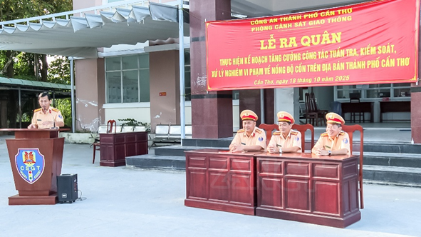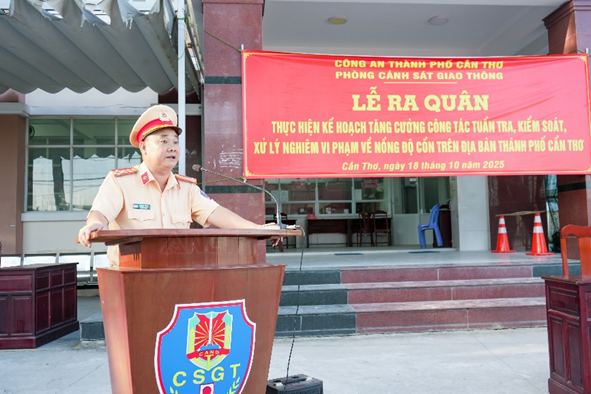 Trước tình trạng người điều khiển phương tiện giao thông vi phạm nồng độ cồn có xu hướng gia tăng, nhiều trường hợp vi phạm nồng độ cồn ở mức cao gây tai nạn giao thông, sáng 18/10 Phòng Cảnh sát giao thông Công an thành phố Cần Thơ tổ chức Lễ phát động ra quân Tăng cường tuần tra, kiểm soát, xử lý vi phạm nồng độ cồn trên địa bàn thành phố.