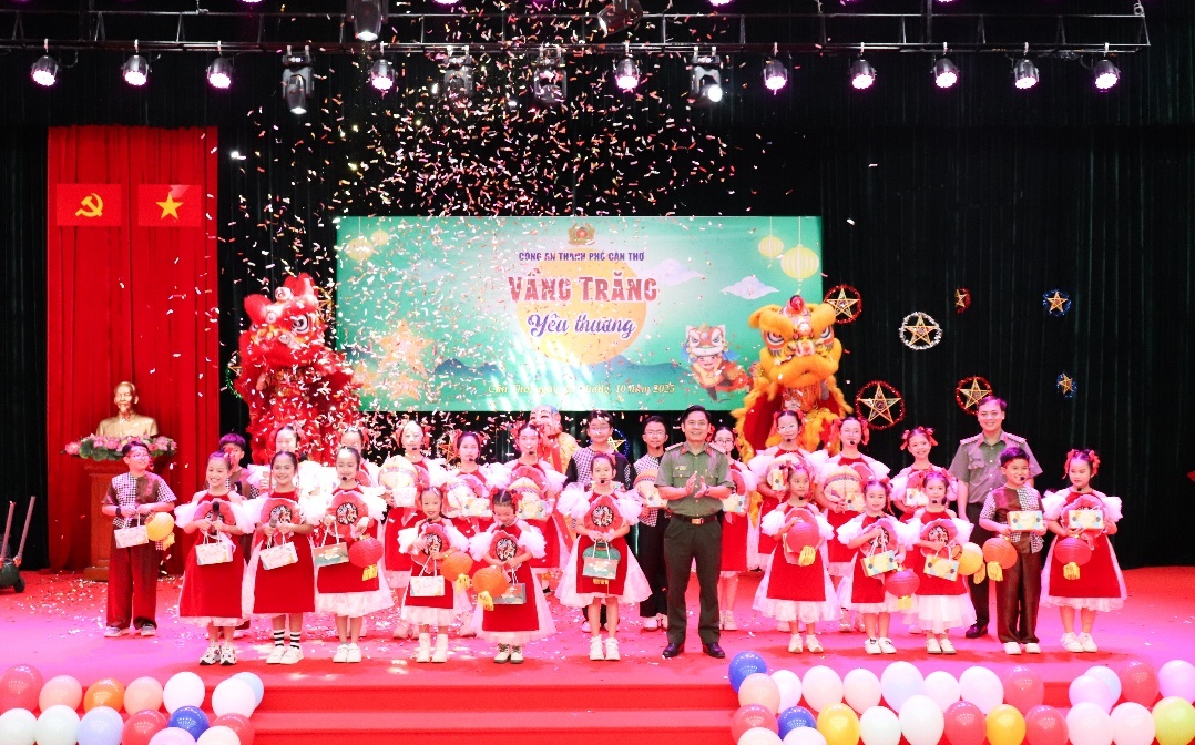 Nhân dịp Tết Trung thu, đồng chí Phó Giám đốc Công an thành phố đã gửi lời chúc mừng ân cần đến toàn thể các cháu thiếu nhi tại điểm cầu Hội trường Công an tỉnh Hậu Giang (cũ) và Hội trường Công an tỉnh Sóc Trăng (cũ), mong các cháu có một mùa Trung thu vui tươi, ý nghĩa, chăm ngoan, học giỏi, xứng đáng là niềm tự hào của gia đình; đồng thời, gửi tặng những phần quà đến toàn thể các em thiếu nhi với mong muốn các em có một mùa Trung thu thật vui tươi, ấm áp./.