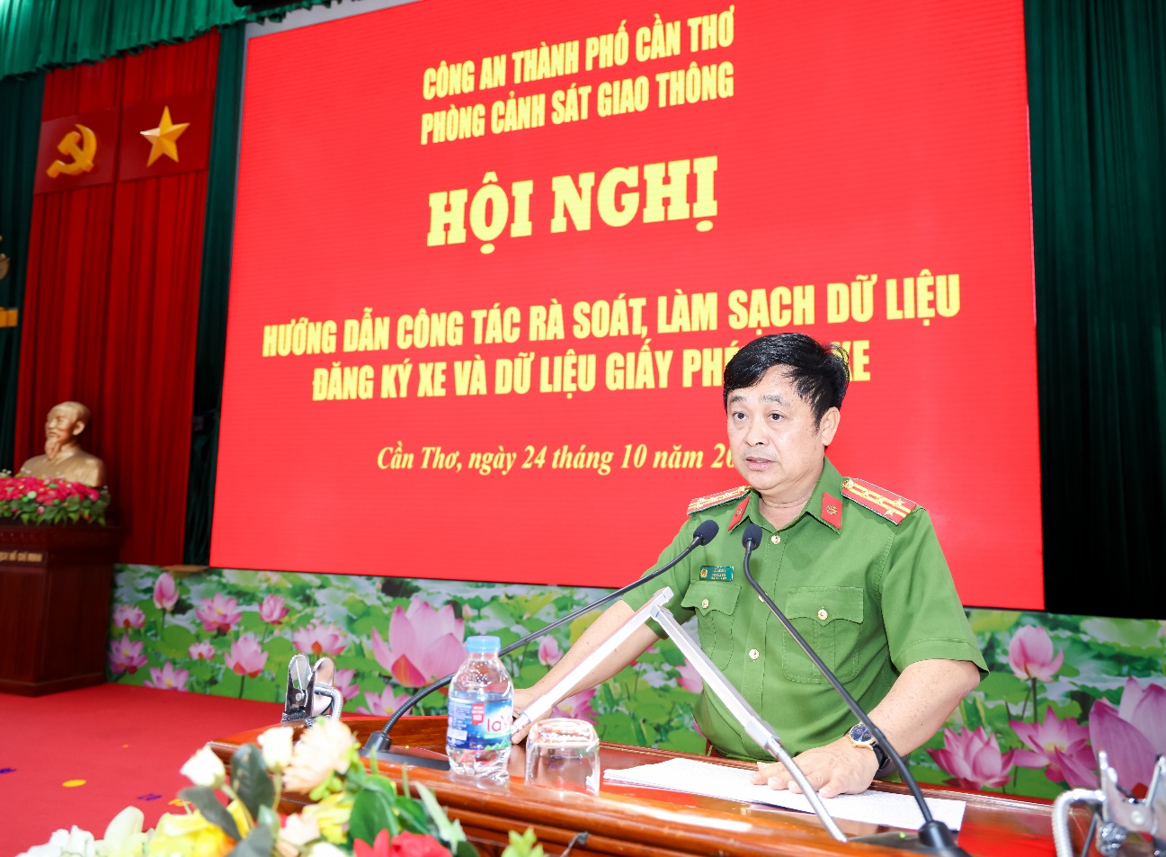 Chiều 24/10, Công an TP Cần Thơ tổ chức hội nghị tập huấn triển khai công tác tổng rà soát, làm sạch dữ liệu đăng ký phương tiện, giấy phép lái xe và số hoá hồ sơ đăng ký xe theo chỉ đạo của Bộ Công an. Đại tá Lê Đức Bảy, Ủy viên Ban Thường vụ Đảng ủy, Phó Giám đốc Công an thành phố dự và chỉ đạo hội nghị; cùng dự có lãnh đạo các đơn vị nghiệp vụ, chỉ huy và cán bộ phụ trách công tác đăng ký xe Công an các xã, phường.