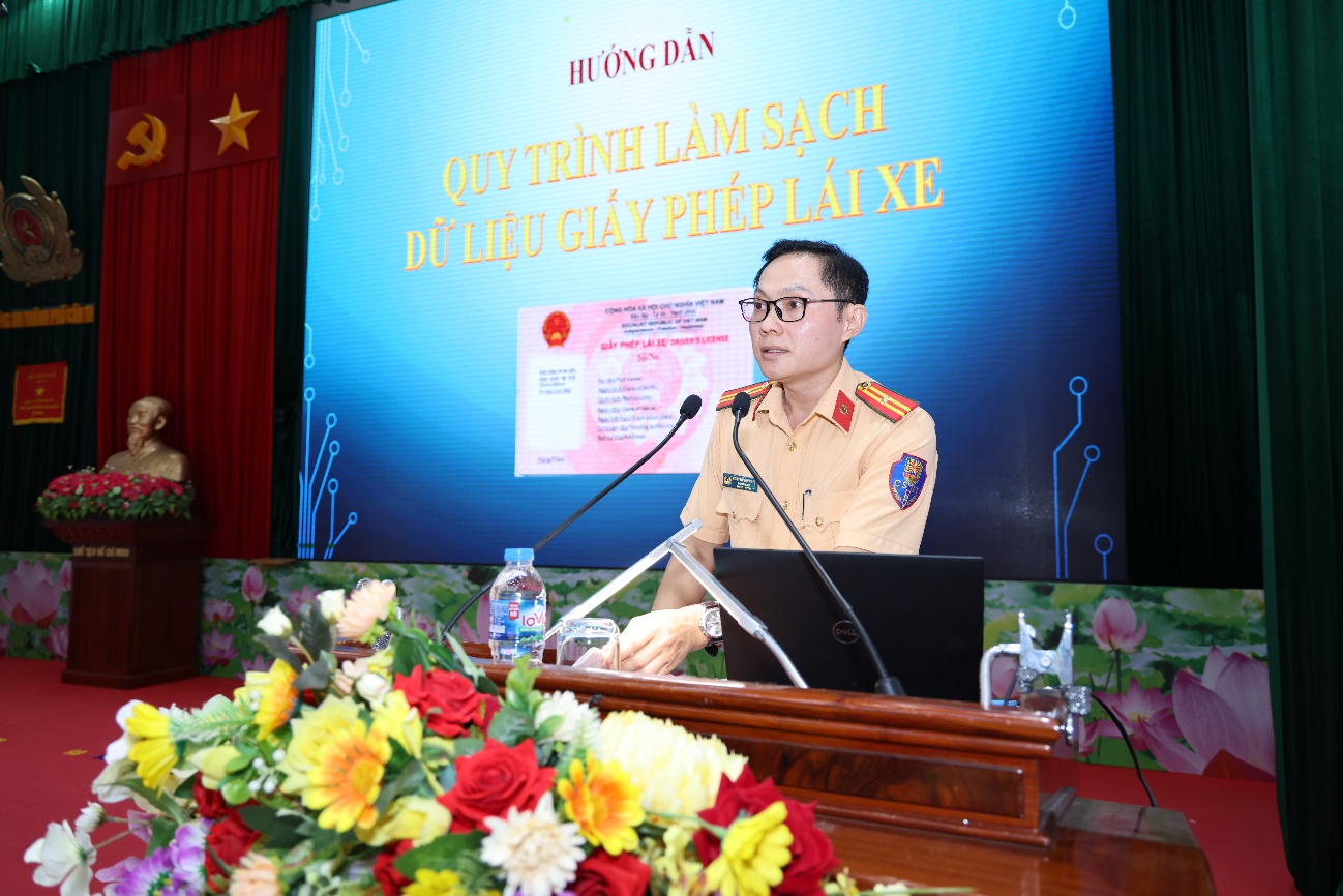 Báo cáo viên hướng dẫn quy trình thực hiện rà soát, làm sạch dữ liệu đăng ký phương tiện, giấy phép lái xe và số hoá hồ sơ đăng ký xe