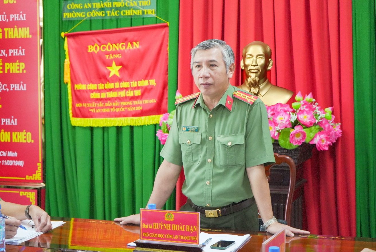 Đồng chí Đại tá Huỳnh Hoài Hận, Phó Giám đốc Công an thành phố phát biểu chỉ đạo, kệt luận Hội nghị