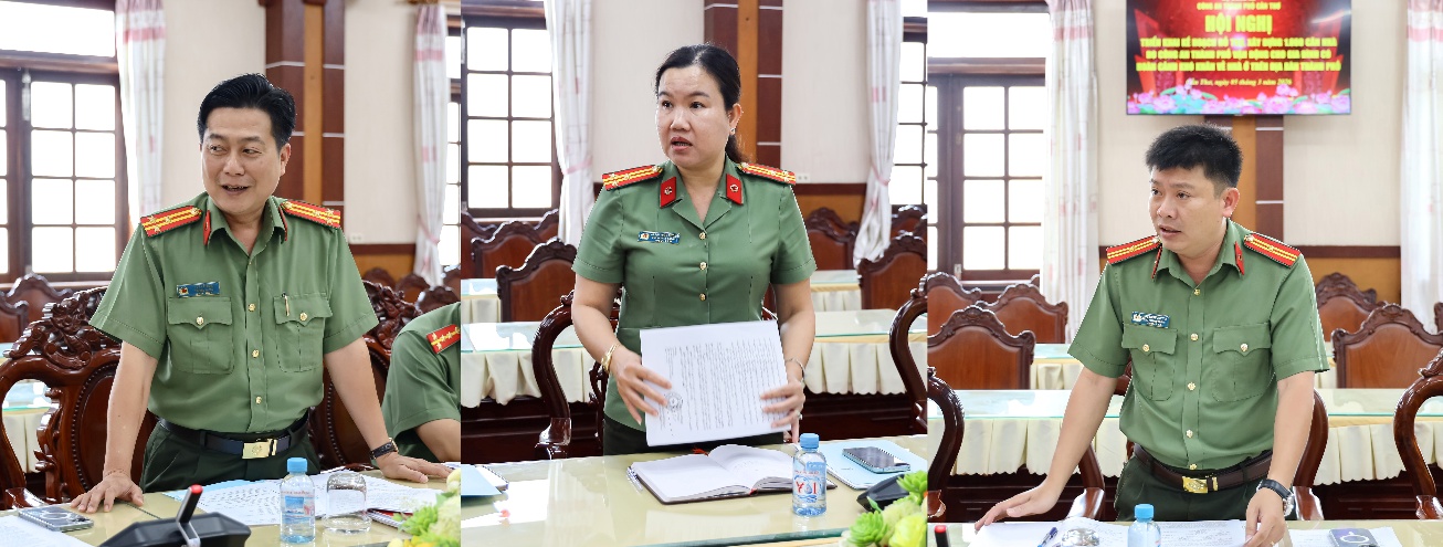 Đại tá Nguyễn Thanh Tràng, Phó Giám đốc Công an thành phố phát biểu tại Hội nghị