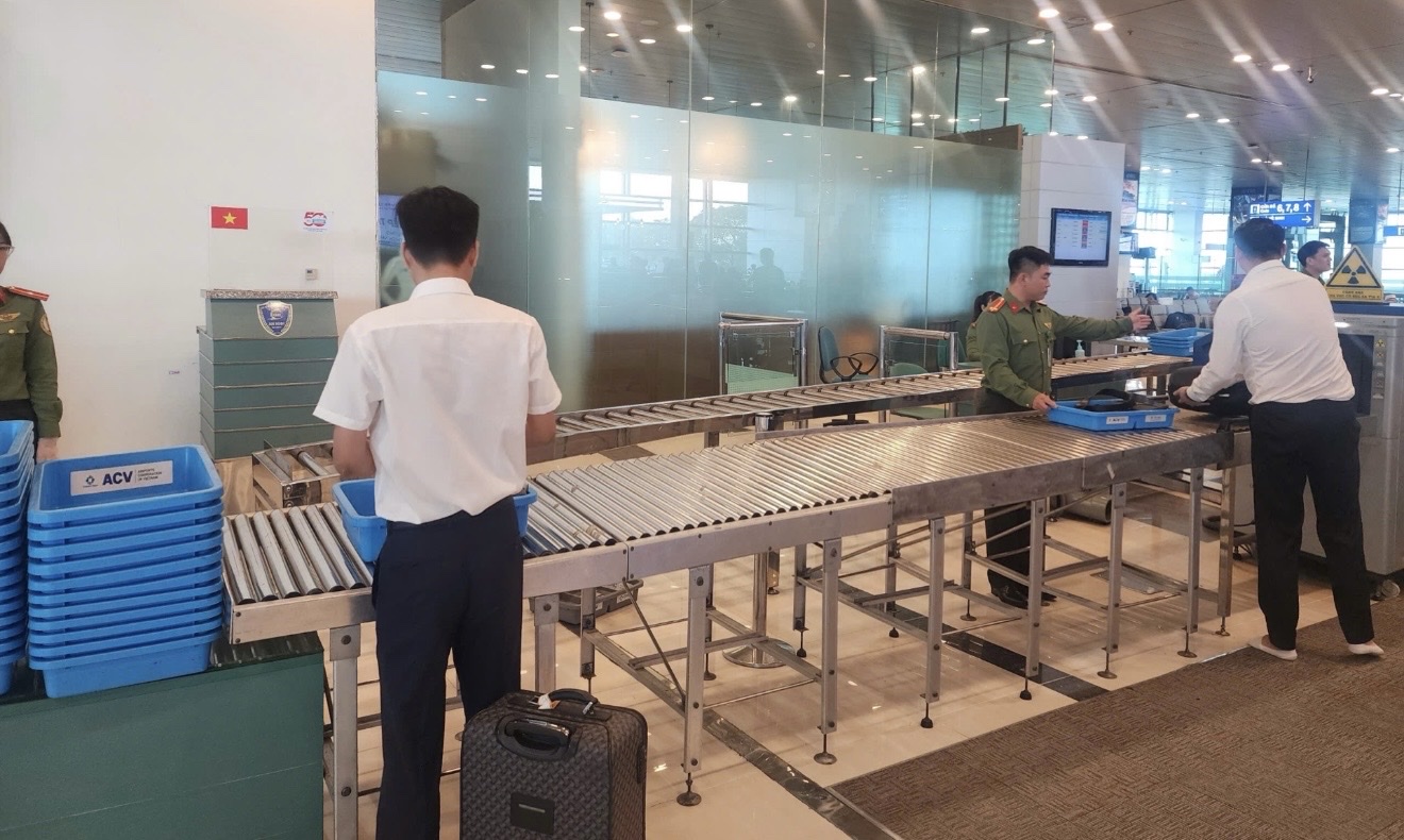 Lực lượng An ninh hàng không thực hiện nhiệm vụ soi chiếu hành lý xách tay