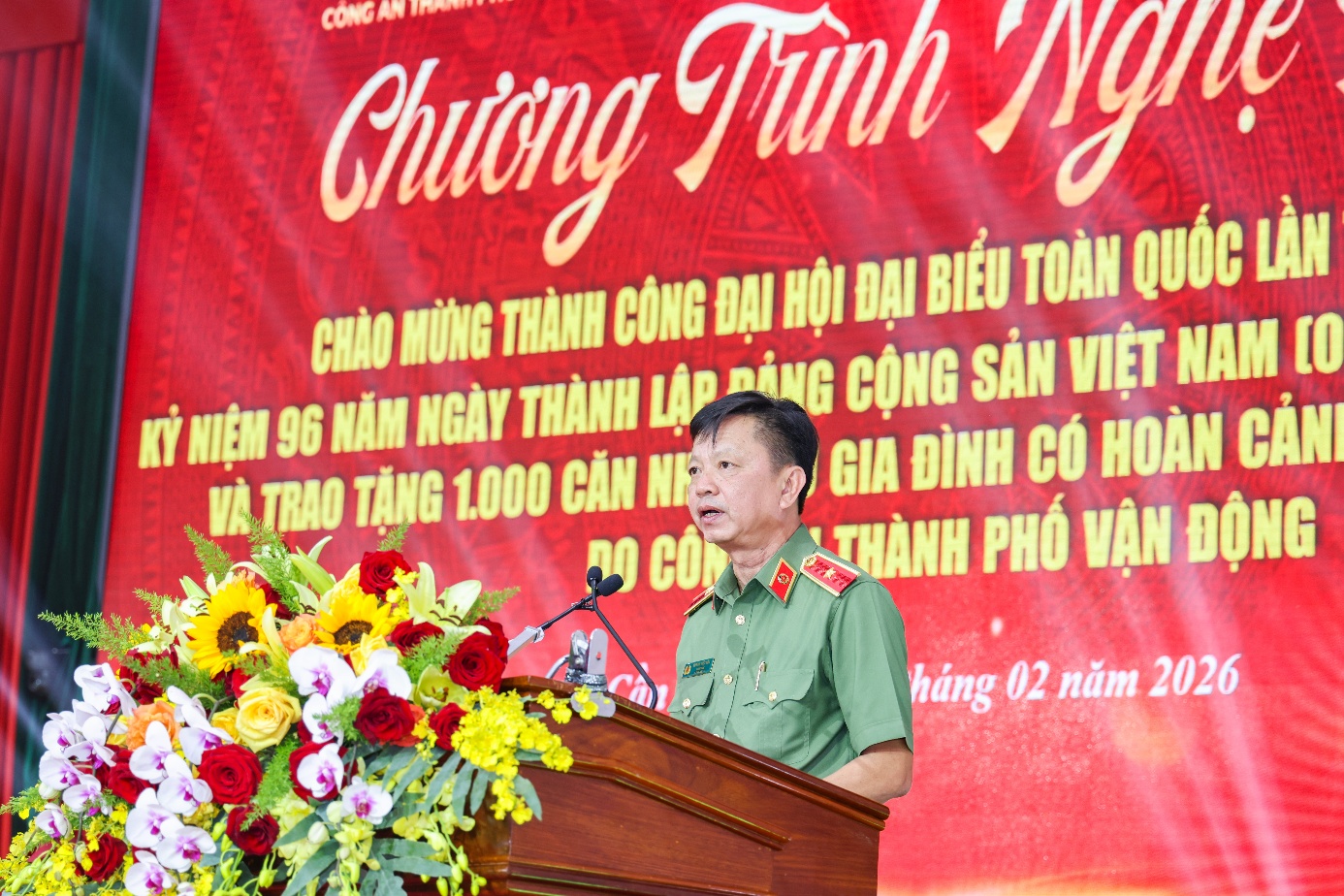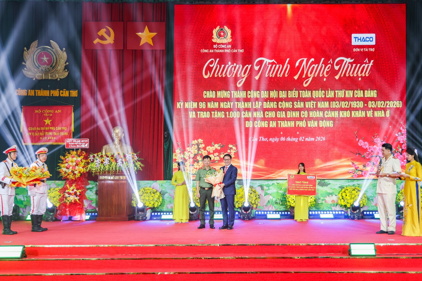 Tối 06/02/2026, Công an thành phố Cần Thơ tổ chức Chương trình nghệ thuật với chủ đề “Công an thành phố Cần Thơ - Chung tay vì bình yên cuộc sống - Vì hạnh phúc Nhân dân”, chào mừng thành công Đại hội đại biểu toàn quốc lần thứ XIV của Đảng, kỷ niệm 96 năm Ngày thành lập Đảng Cộng sản Việt Nam (03/02/1930 - 03/02/2026) và điểm nhấn đặc biệt: trao tặng 1.000 căn nhà cho các gia đình có hoàn cảnh khó khăn về nhà ở do Công an thành phố vận động, với sự đồng hành trách nhiệm của Tập đoàn Trường Hải (THACO). Chương trình được truyền hình trực tiếp trên sóng Báo và Phát thanh, Truyền hình thành phố Cần Thơ và phát trực tiếp trên các nền tảng số, lan tỏa rộng rãi thông điệp về niềm tin, nghĩa tình và trách nhiệm xã hội.