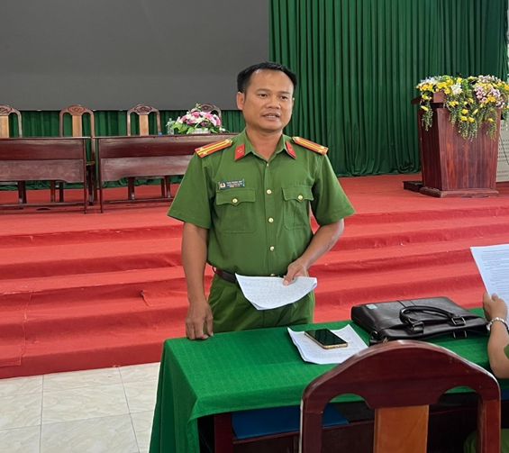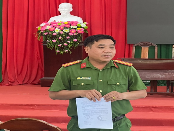 Đồng chí Trần Hoàng Huy, Trưởng Công an xã quán triệt một số nội dung