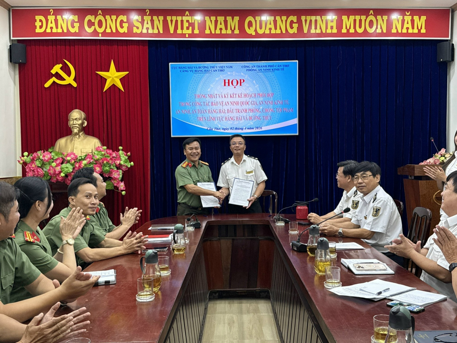 Ngày 02/4/2026, Cảng vụ Hàng hải Cần Thơ và Phòng An ninh kinh tế - Công an thành phố Cần Thơ tổ chức Lễ ký kết Kế hoạch phối hợp nhằm tăng cường công tác bảo đảm an toàn, an ninh hàng hải gắn với giữ vững an ninh kinh tế trên địa bàn. Hoạt động đánh dấu bước phát triển mới trong phối hợp liên ngành, góp phần phòng ngừa, phát hiện, xử lý kịp thời các hành vi vi phạm, phục vụ hiệu quả nhiệm vụ phát triển kinh tế – xã hội của thành phố.