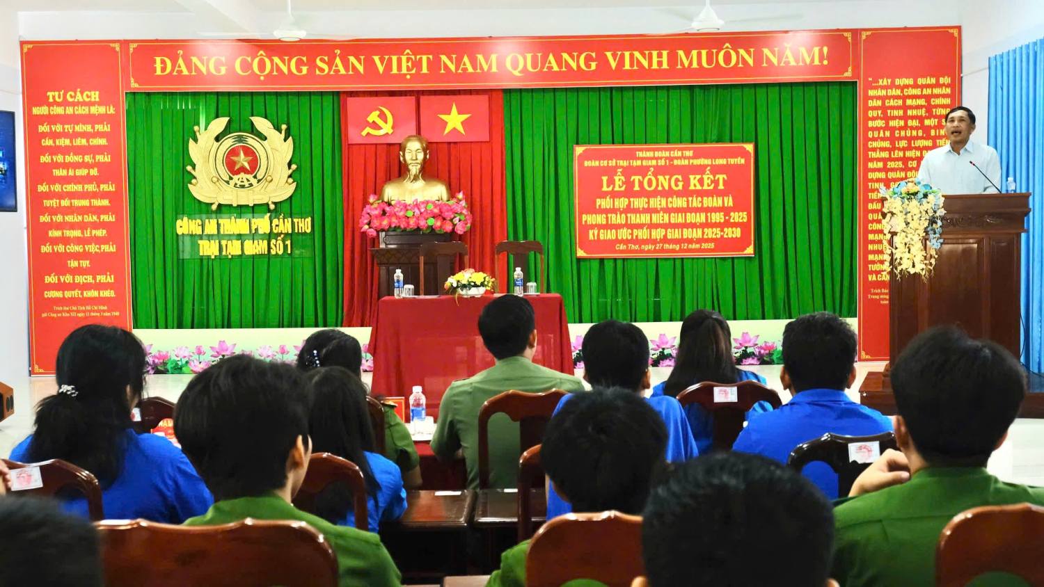 Nhằm đánh giá công tác phối hợp thực hiện công tác Đoàn và phong trào thanh niên giai đoạn 1995 - 2025, vừa qua, Đoàn cơ sở Trại Tạm giam số 1, Công an TP Cần Thơ và Đoàn phường Long Tuyền đã long trọng tổ chức lễ tổng kết và ký kết giao ước phối hợp giai đoạn 2025 – 2030