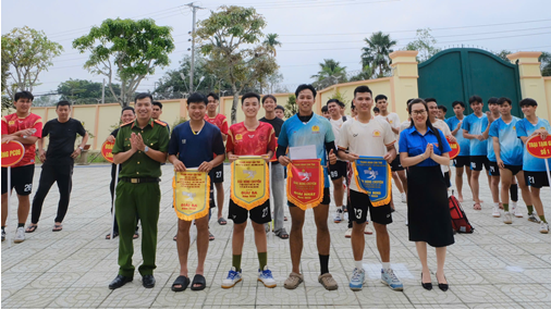 Thượng úy Bùi Tuấn Thanh, Bí thư Đoàn cơ sở Trại Tạm giam số 1 và đồng chí Nguyễn Thị Ánh Thư, UV BCH Thành Đoàn, Phó Chủ tịch UBMTTQVN, Bí thư Đoàn phường Long Tuyền trao giải và tiền thưởng cho các đội bóng đạt giải
