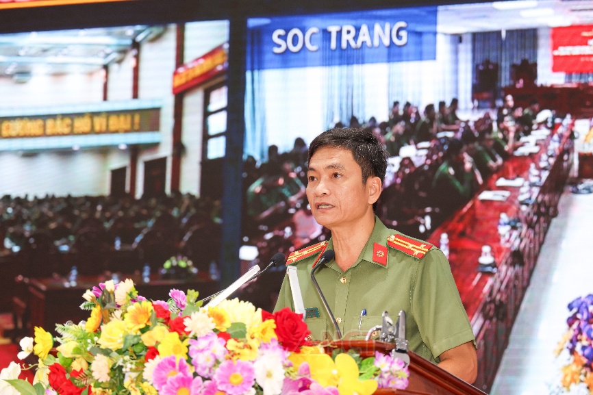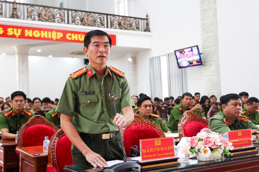 Đại tá Huỳnh Hoài Hận, Phó Giám đốc Công an thành phố phát biểu chỉ đạo tại hội nghị