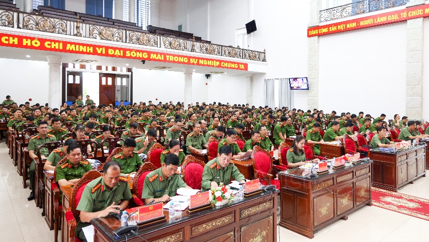 Đồng chí nhấn mạnh, trong bối cảnh triển khai mô hình chính quyền hai cấp và sáp nhập các đơn vị hành chính, bên cạnh thuận lợi vẫn còn nhiều khó khăn tác động đến tâm tư, tình cảm của cán bộ, chiến sĩ. Có đồng chí phải đi làm xa hàng chục cây số, có đồng chí gặp khó khăn về điều kiện gia đình, sinh hoạt; tuy nhiên, đồng chí nhấn mạnh: “Chúng ta là lực lượng Công an nhân dân, luôn sẵn sàng đi bất cứ đâu, làm bất cứ việc gì khi Tổ quốc, Đảng và Nhân dân cần đến”. Mỗi cán bộ, chiến sĩ khi đứng trong hàng ngũ Công an nhân dân Việt Nam đều đã tự nguyện giữ trọn lời thề tuyệt đối trung thành với Đảng, Tổ quốc và Nhân dân, sẵn sàng nhận và hoàn thành bất kì nhiệm vụ nào mà Đảng, Tổ quốc và Nhân dân giao phó. Chính vì vậy, đồng chí yêu cầu các cấp ủy, lãnh đạo đơn vị phải làm thật tốt công tác quản lý, giáo dục chính trị, tư tưởng cho cán bộ, chiến sĩ, đặc biệt là đội ngũ cám bộ trẻ; phải thường xuyên gần gũi, chia sẻ, lắng nghe, kịp thời nắm bắt tâm tư, nguyện vọng, giải quyết thấu đáo những khó khăn chính đáng, hợp lý, giúp cán bộ, chiến sĩ an tâm công tác, phấn đấu và cống hiến. Công tác chính trị, tư tưởng phải được thực hiện bằng cả tấm lòng, bằng sự đồng cảm và trách nhiệm, để mỗi cán bộ, chiến sĩ đều cảm nhận được sự quan tâm, tin tưởng, từ đó biến niềm tin thành hành động, thành kết quả thực tiễn.