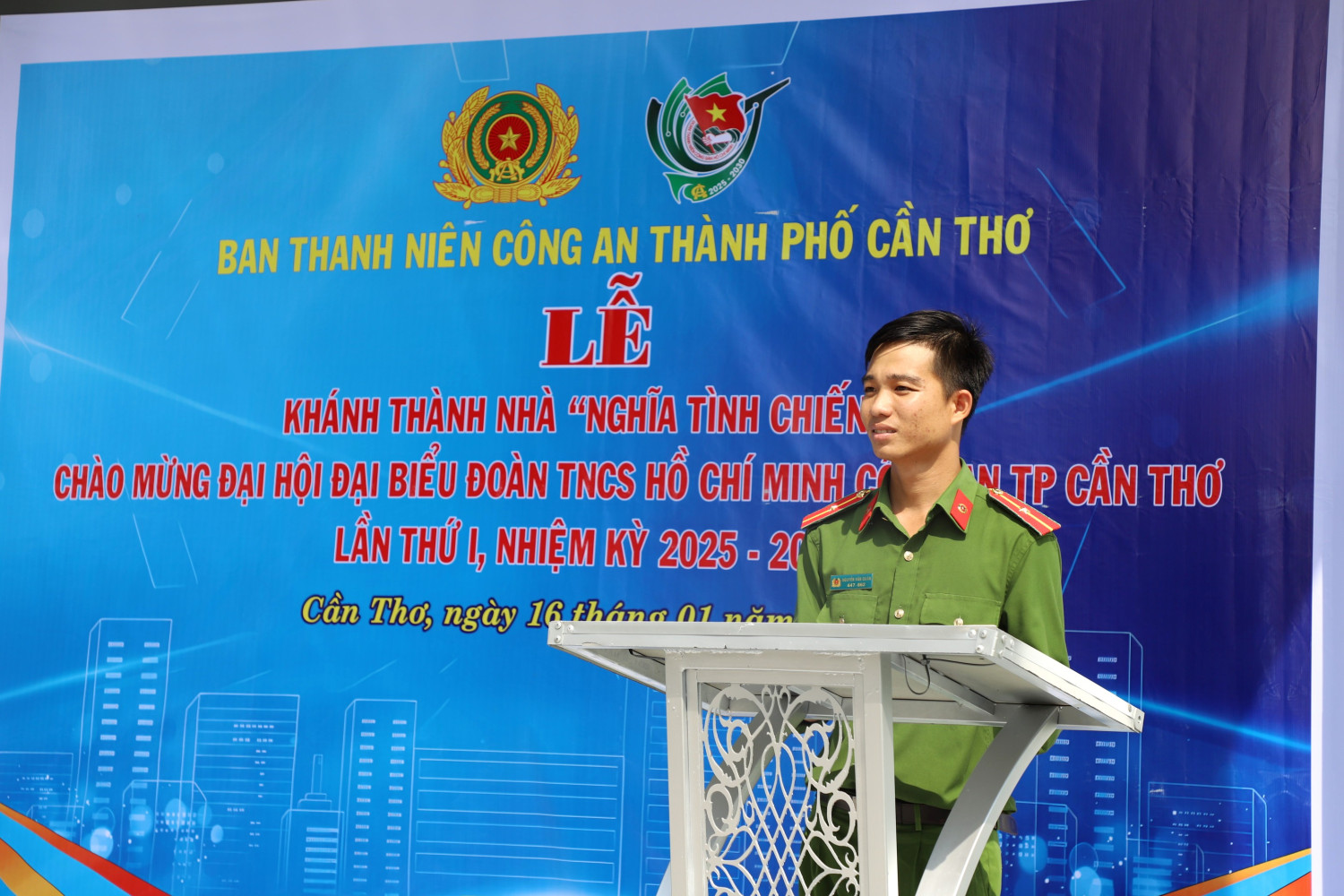 Cũng trong ngày 16/01/2026, Ban Thanh niên Công an thành phố đã tổ chức Lễ Khánh thành nhà “Nghĩa tình chiến sĩ” cho đồng chí Thiếu úy Nguyễn Văn Quân, hiện đang công tác tại Công an xã Cờ Đỏ, thành phố Cần Thơ. Một công trình mang đậm tính nhân văn sâu sắc, thể hiện tinh thần “tương thân, tương ái” đoàn kết, gắn bó, sẻ chia trong lực lượng đoàn viên thanh niên Công an thành phố. Đây là trường hợp có hoàn cảnh hết sức khó khăn, được Đảng ủy, Ban Giám đốc và Ban Thanh niên quan tâm, hỗ trợ.