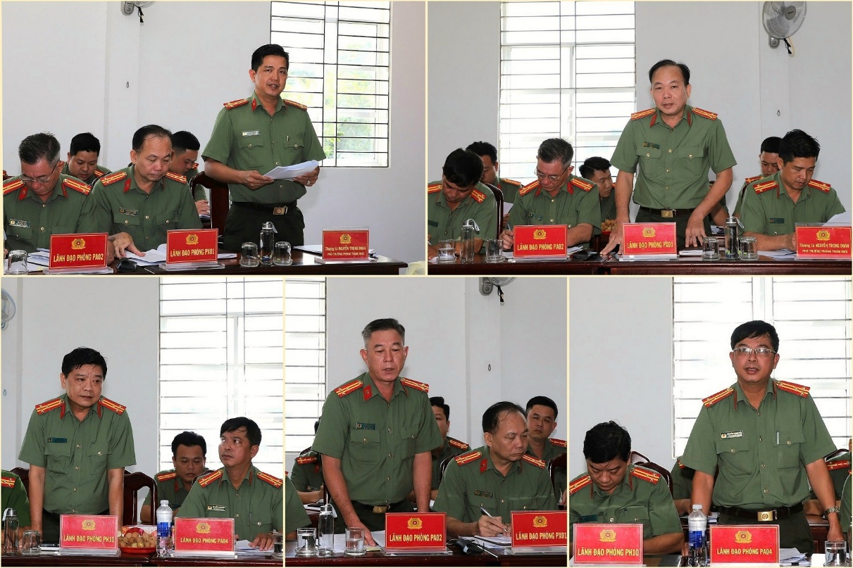 Lãnh đạo các đơn vị nghiệp vụ trao đổi nội dung trên các lĩnh vực công tác.