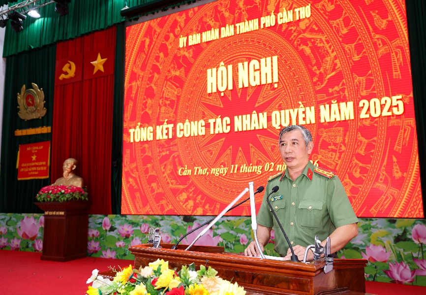 Phát biểu kết luận, chỉ đạo tại Hội nghị, Chủ tịch Ủy ban nhân dân thành phố biểu dương thành tựu, kết quả đạt được trong thực hiện công tác nhân quyền năm 2025 của chính quyền các cấp trên địa bàn thành phố, nòng cốt là vai trò của lực lượng Công an thành phố.Tuy nhiên, đánh giá công tác thực thi chính sách, pháp luật về quyền con người còn gặp những khó khăn, thách thức nhất định, từ đó tác động trực tiếp đến nước ta nói chung và thành phố Cần Thơ nói riêng.