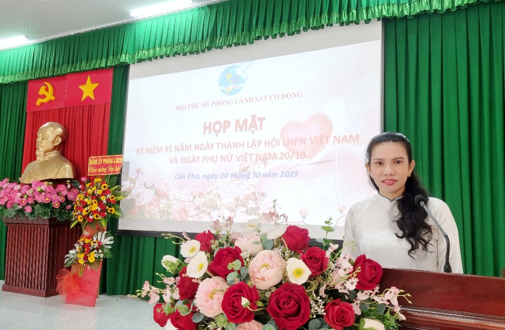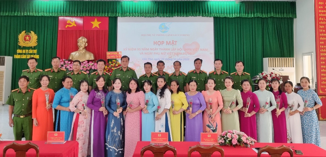 Tiếp bước thành công Đại hội Phụ nữ cơ sở Phòng Cảnh sát cơ động, Công an thành phố Cần Thơ lần I, nhiệm kỳ 2025 - 2030. Sáng ngày 20/10/2025 Hội Phụ nữ cơ sở Phòng Cảnh sát cơ động tổ chức buổi họp mặt kỷ niệm 95 năm Ngày thành lập Hội Liên hiệp Phụ nữ Việt Nam (20/10/1930 – 20/10/2025) và 15 năm Ngày Phụ nữ Việt Nam, với sự tham dự của các đồng chí trong cấp ủy, Ban Lãnh đạo đơn vị, đại diện chỉ huy các Đội, Ban Chấp hành Đoàn và 18 hội viên.