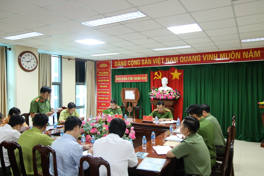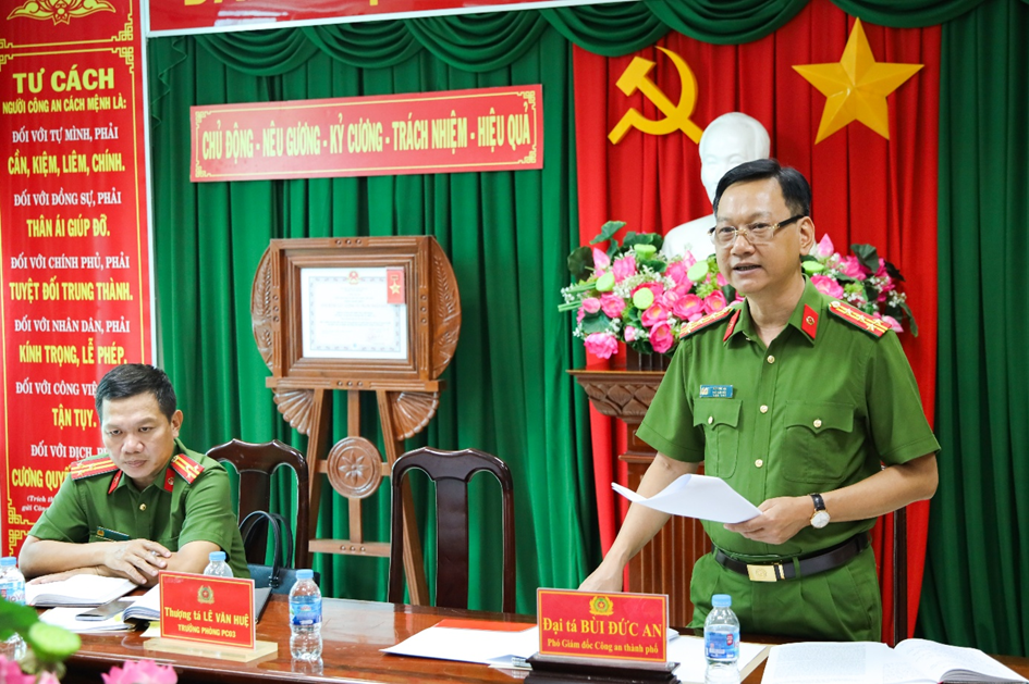 Đại tá Bùi Đức An, Ủy viên Ban Thường vụ Đảng ủy, Phó Giám đốc Công an thành phố, Thủ trưởng Cơ quan Cảnh sát điều tra, Trưởng Ban Chỉ đạo phát biểu kết luận buổi họp