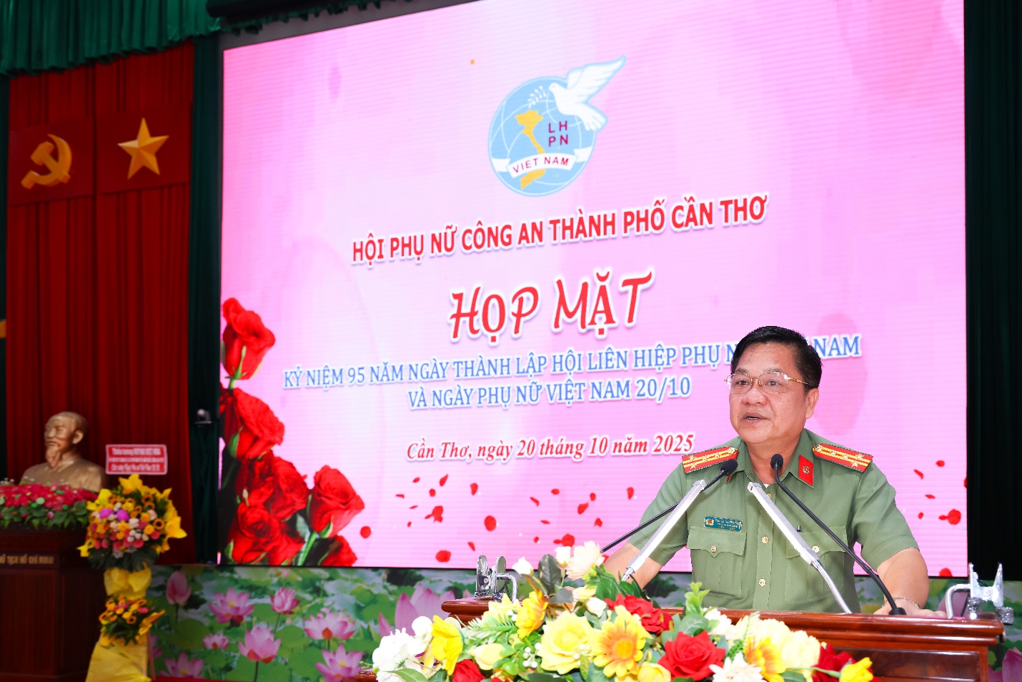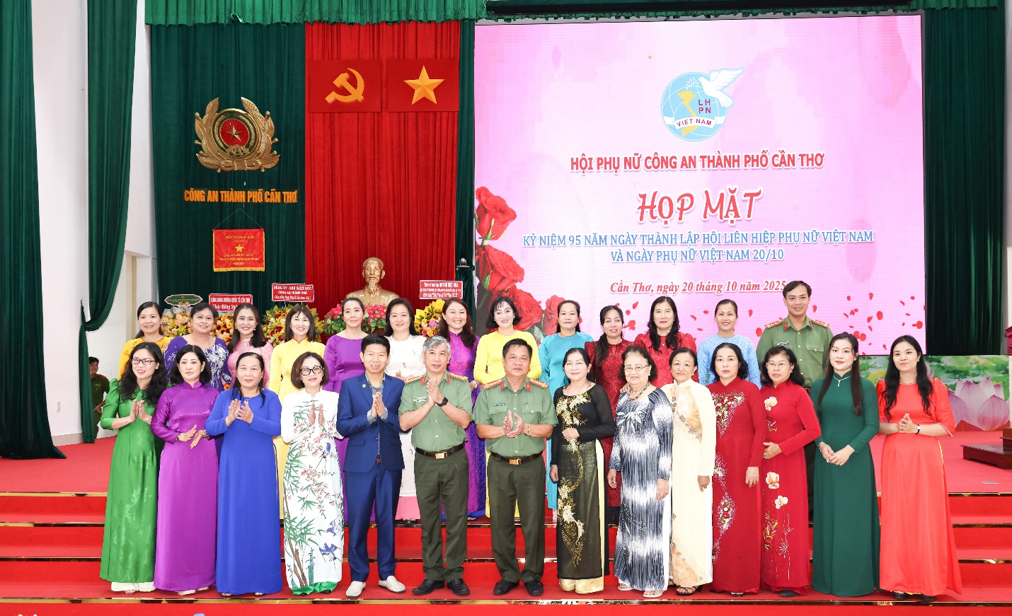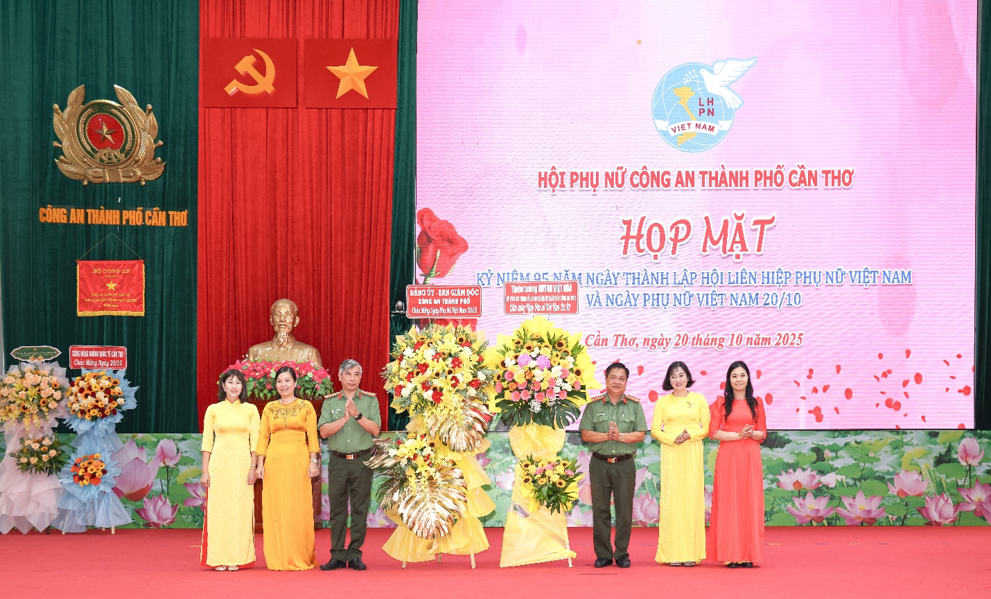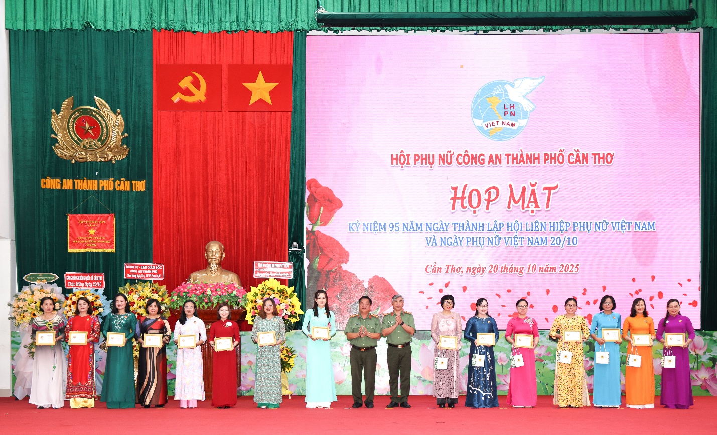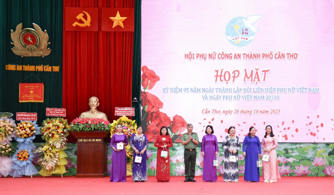 Trong không khí vui tươi, phấn khởi, sáng 20/10/2025, Công an thành phố Cần Thơ tổ chức Chương trình họp mặt kỷ niệm 95 năm Ngày thành lập Hội Liên hiệp Phụ nữ Việt Nam và Ngày Phụ nữ Việt Nam 20/10 trong Công an thành phố. Tham dự có Đại tá Nguyễn Thanh Tràng, Ủy viên Ban Chấp hành Đảng bộ thành phố Cần Thơ, Phó Bí thư Đảng ủy, Phó Giám đốc Công an thành phố; Đại tá Huỳnh Hoài Hận, Ủy viên Ban Thường vụ Đảng ủy, Phó Giám đốc Công an thành phố cùng đại diện lãnh đạo, nguyên lãnh đạo Hội Phụ nữ Công an thành phố qua các thời kỳ, đại diện Chi hội Phụ nữ cơ sở.