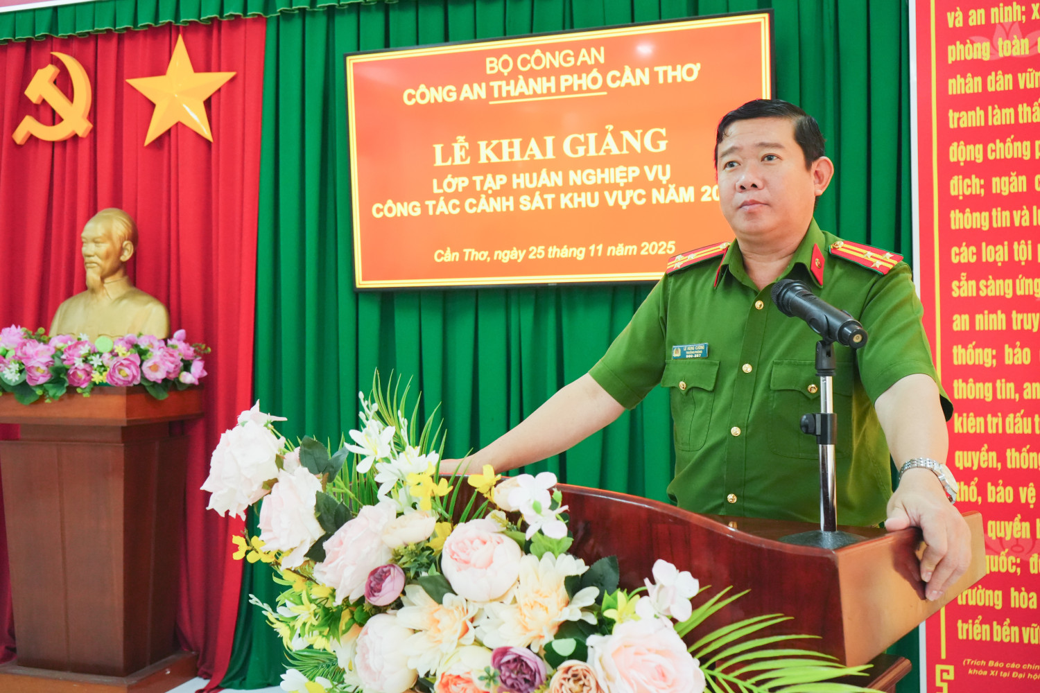 Sáng ngày 25/11/2025, tại Trung tâm Bồi dưỡng và Huấn luyện nghiệp vụ, Phòng Tổ chức cán bộ, Công an thành phố Cần Thơ, Công an thành phố tổ chức lễ khai giảng lớp tập huấn công tác Cảnh sát khu vực năm 2025.