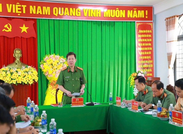 Đại tá Nguyễn Thanh Bình, Ủy viên Ban Thường vụ Đảng ủy, Phó Giám đốc Công an thành phố phát biểu chỉ đạo tại Công an phường Trung Nhứt.