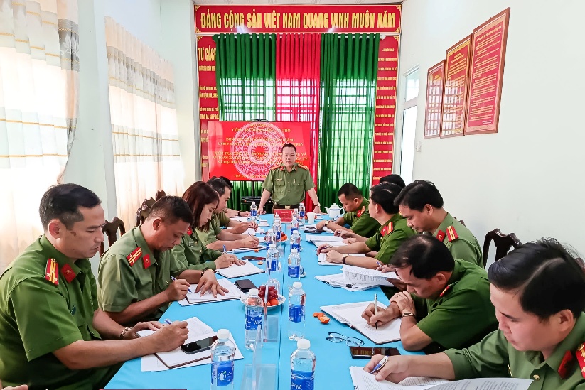 Đại tá Nguyễn Văn Thắng, Phó Giám đốc Công an thành phố Cần Thơ làm việc với Công an xã Vĩnh Thạnh và Vĩnh Trinh về phương án bảo đảm an ninh, trật tự phục vụ bầu cử