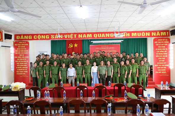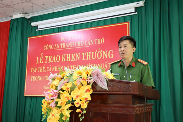 Đại tá Bùi Đức An, Ủy viên Ban Thường vụ Đảng ủy, Phó Giám đốc, Thủ trưởng Cơ quan Cảnh sát điều tra Công an thành phố Cần Thơ trao thưởng cho các cá nhân có thành tích xuất sắc
