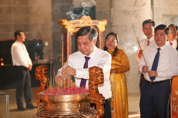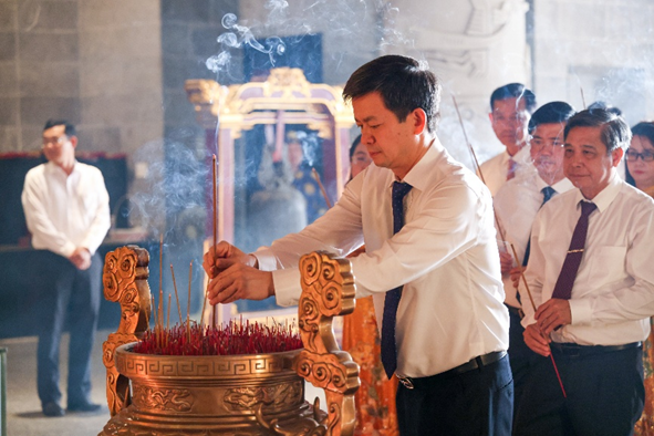 Đại biểu đến dâng hoa, dâng hương tưởng niệm Chủ tịch Hồ Chí Minh và các bậc tiền bối cách mạng