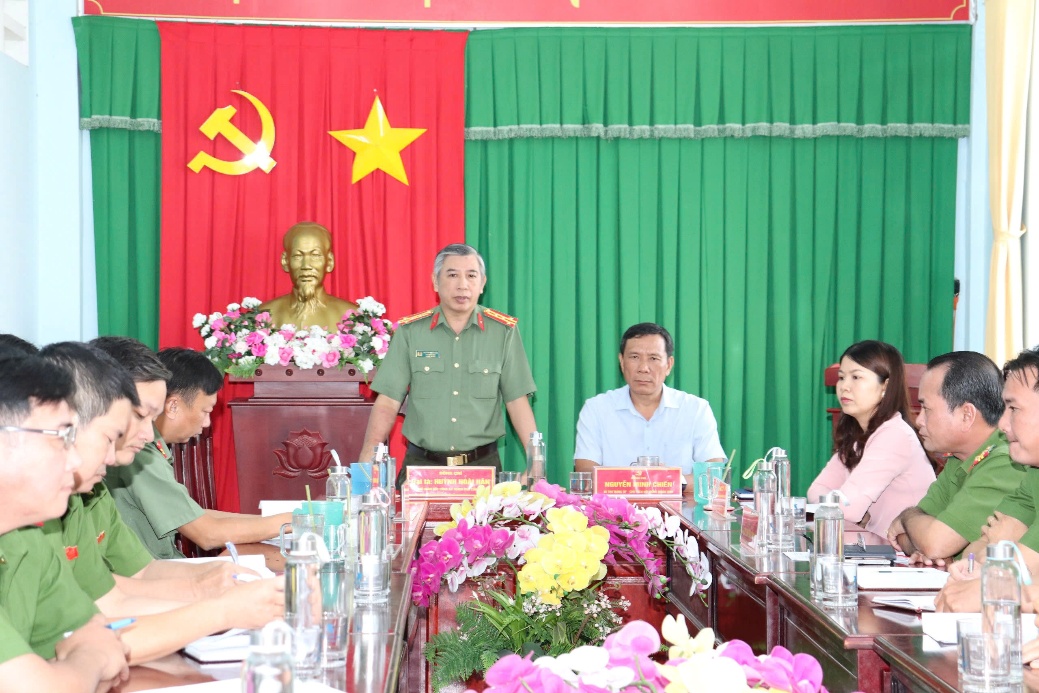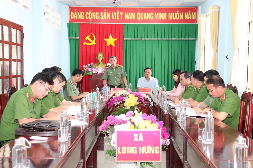 Đại tá Huỳnh Hoài Hận, Ủy viên Ban Thường vụ Đảng ủy, Phó Giám đốc Công an thành phố Cần Thơ làm việc với Công an xã Long Hưng.