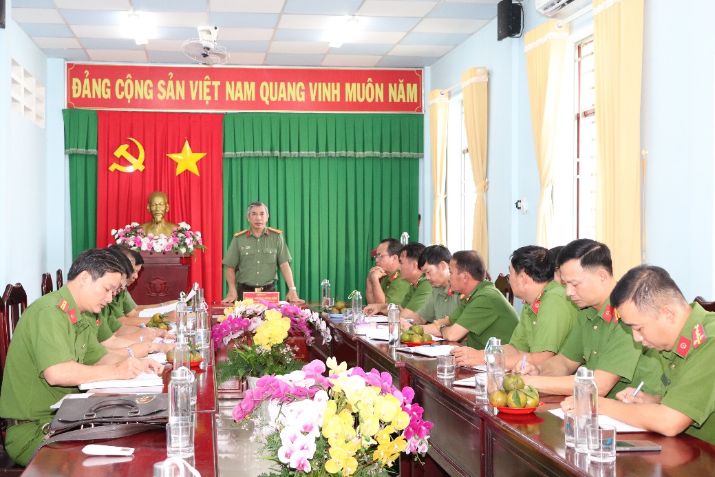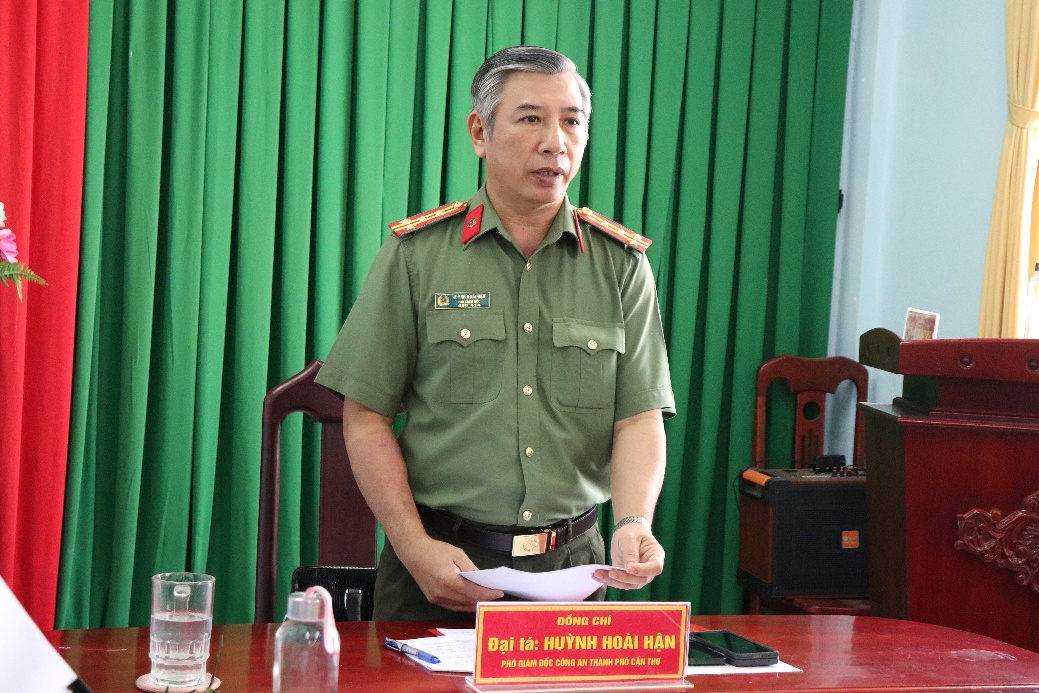 Đại tá Huỳnh Hoài Hận, Ủy viên Ban Thường vụ Đảng ủy, Phó Giám đốc Công an thành phố Cần Thơ phát biểu tại buổi làm việc.