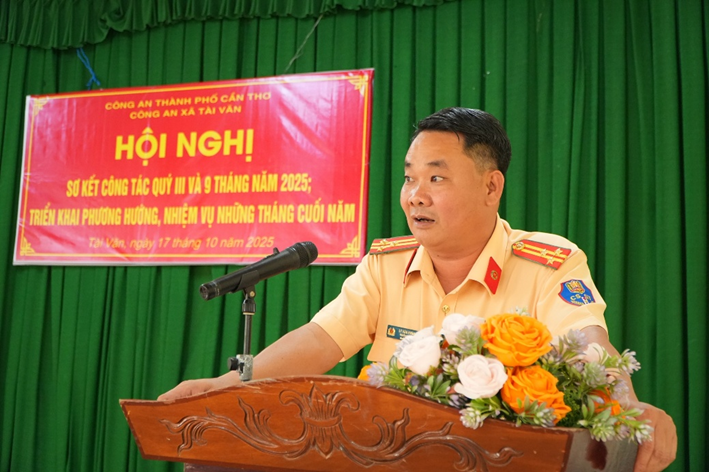 Trưởng Công an xã Tài Văn báo cáo kết quả công tác Quý III và 09 tháng năm 2025