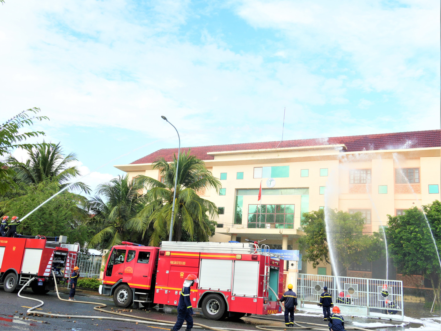 Cán bộ, chiến sĩ diễn tập tình huống chữa cháy, cứu nạn, cứu hộ