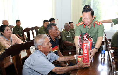 Đại tá Nguyễn Văn Thắng, Uỷ viên Ban Thường vụ Đảng uỷ, Phó Giám đốc Công an thành phố Cần Thơ thăm, chúc Tết đồng chí Trần Quốc Trung, nguyên Ủy viên Trung ương Đảng, nguyên Bí thư Thành ủy Cần Thơ
